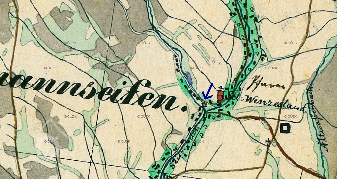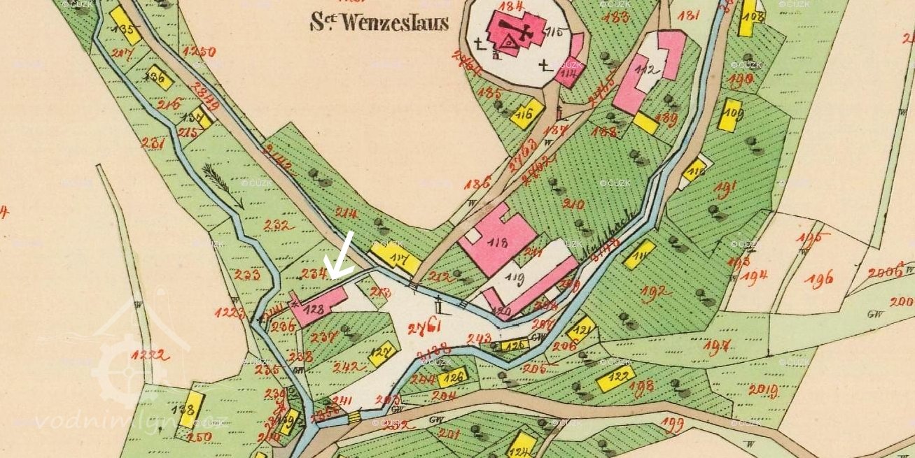 Zaniklý mlýn u pivovaru pod kostelem sv. Václava. Dnes se zde nachází zastavěný pozemek Autokempu Heřman.