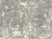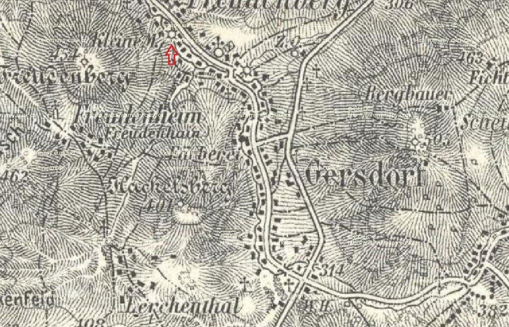 Mlýn je vyobrazen již na I. vojenském mapování z let 1764-1768. Obec Kerhartice se tehdy nazývala Gersdorf.