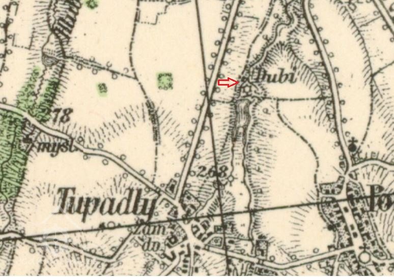 Soupis mlynářů kraje Čáslavského v Berní rule z roku 1654 obsahuje údaj: Jan, Dubí, mlýn vlastní, 1 kolo.
