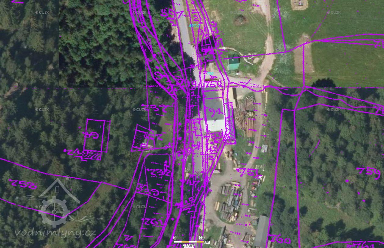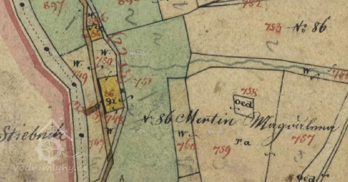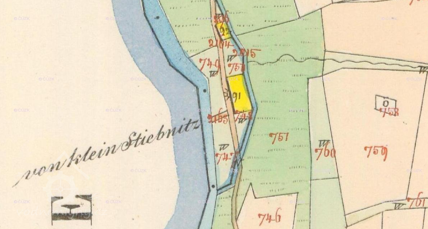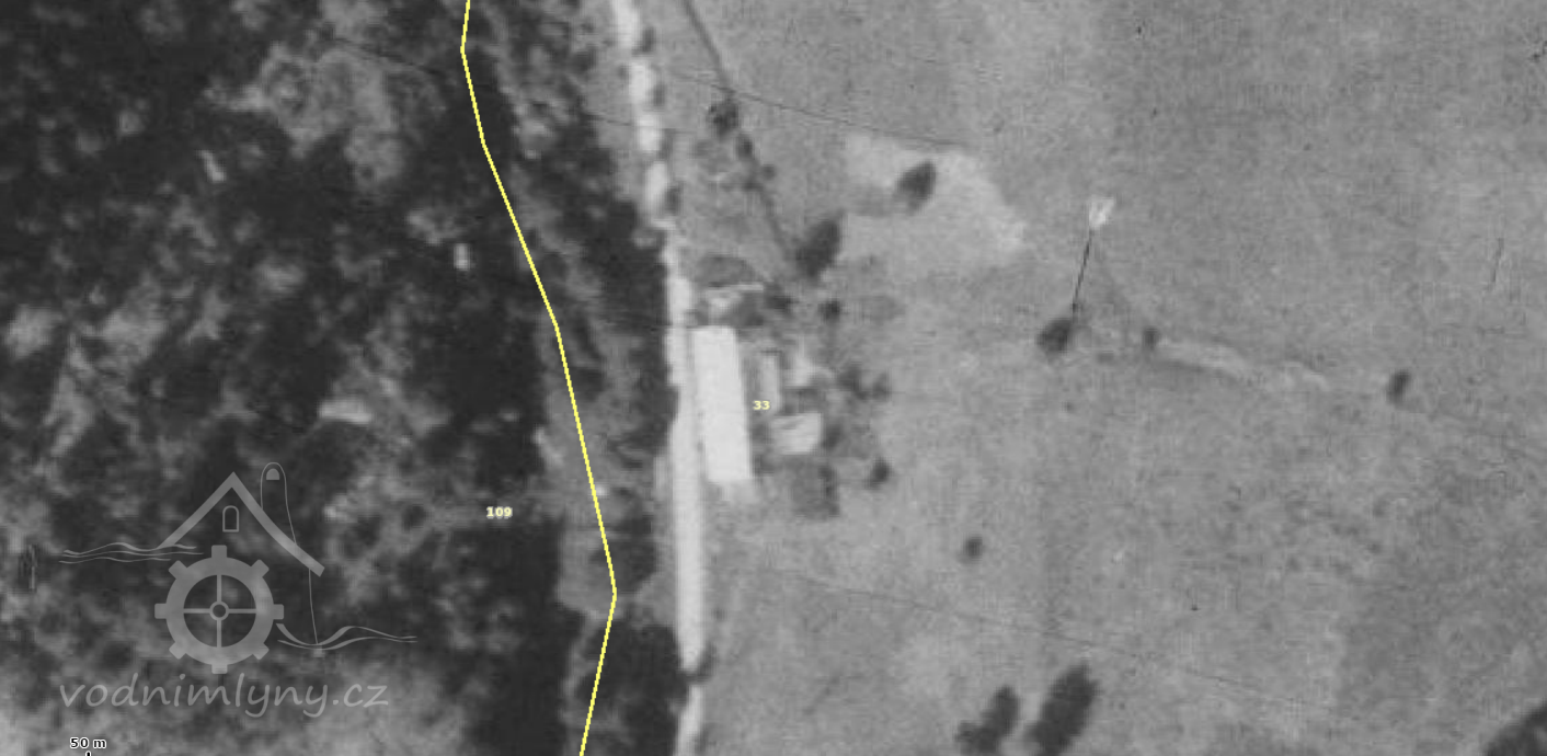 Popis1930 pila a mlýn: 3 kola na svrchní vodu 1) hltnost 0,14 m3/s, spád 3,55 m 2) hltnost 0,079 m3/s, spád 3,95 m celkový výkon 7 HP