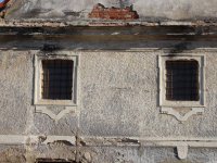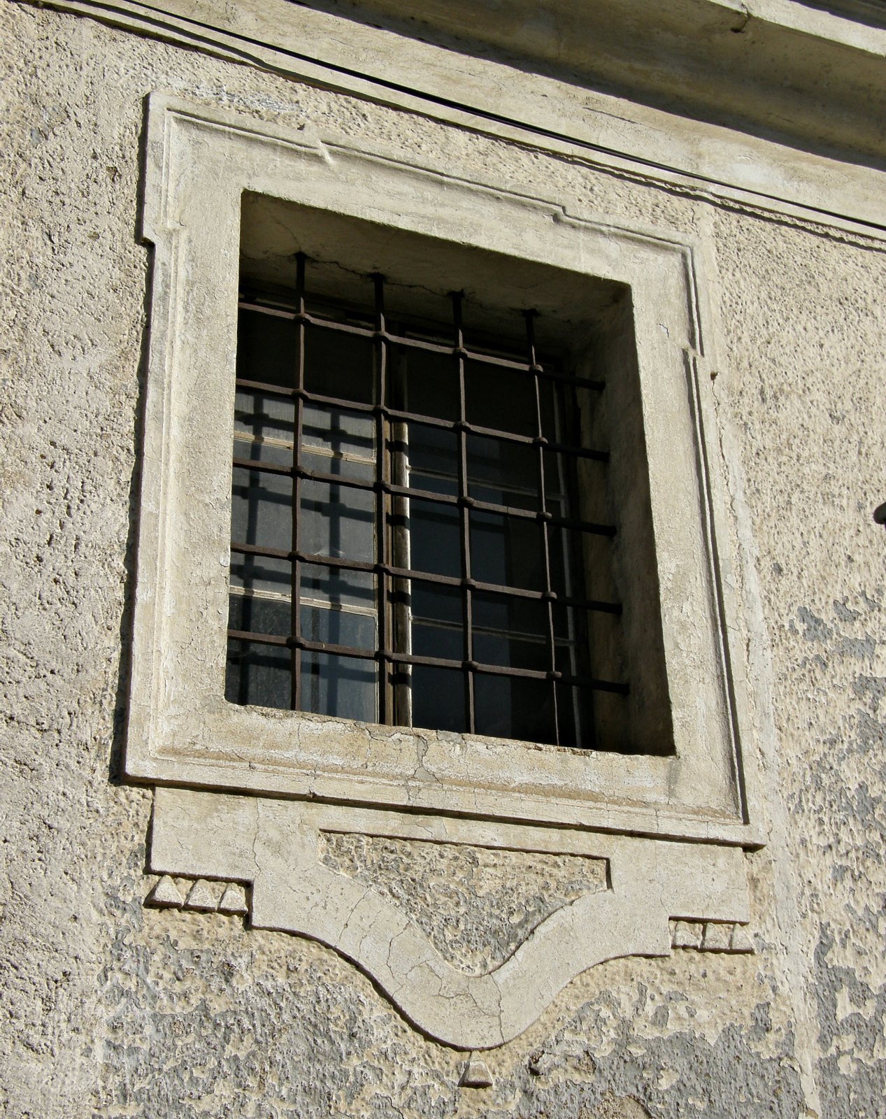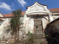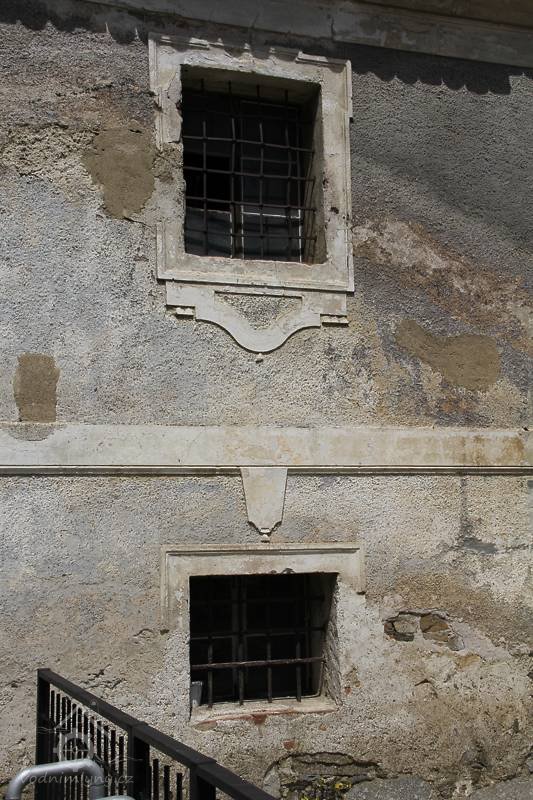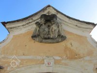 Vstupní branka s rovným nadpražím svou horní částí zasahuje do mělké niky půlkruhového tvaru, orámované archivoltou a klenákem. Po stranách vchodu jsou pilastry s plochým dříkem a profilovanou hlavicí.