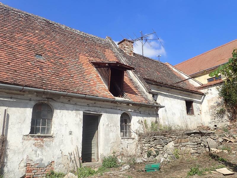 Ze západní strany situovaná jednopatrová budova uzavírající dvůr lichoběžníkového tvaru. Objekt vsazený do svažitého terénu se sestává ze dvou stavebních fází. V severním rohu se nachází jednoprostorová obytná část s výrazným průčelím orientovaným směrem do ulice. Toto průčelí je prosvětleno dvěma obdélnými okenními otvory. Profilovaná průběžná římsa odděluje trojúhelný štít s bohatě tvarovaným na osu umístěným okenní otvorem. Přístup do této části je umožněn ze východní strany jednoduchým obdélným vstupem. Nároží objektu je náznakem v omítce bosováno. Novější jižní část sloužila jako chlévy. Tato části je přístupná z východní strany dvěma obdélnými vstupy mezi kterými jsou umístěna půlkruhově zakončená okna. Nároží objektu je zvýrazněno v omítce naznačenou bosáží. Podstřešní profilovaná římsa nese částečně valbovou střechu.