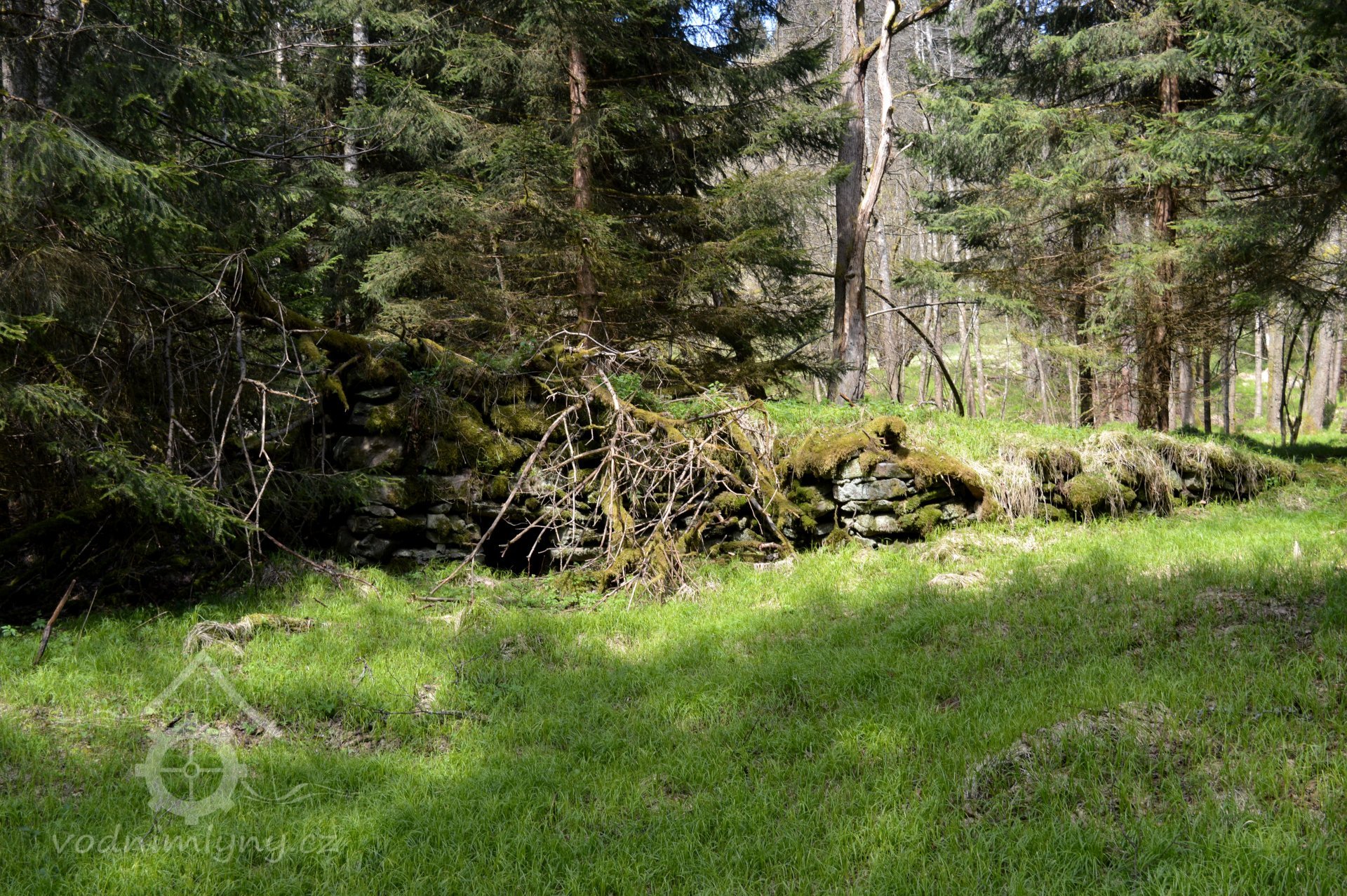 Dosud patrné zříceniny hamru přebudovaného později na mlýn s pilou.