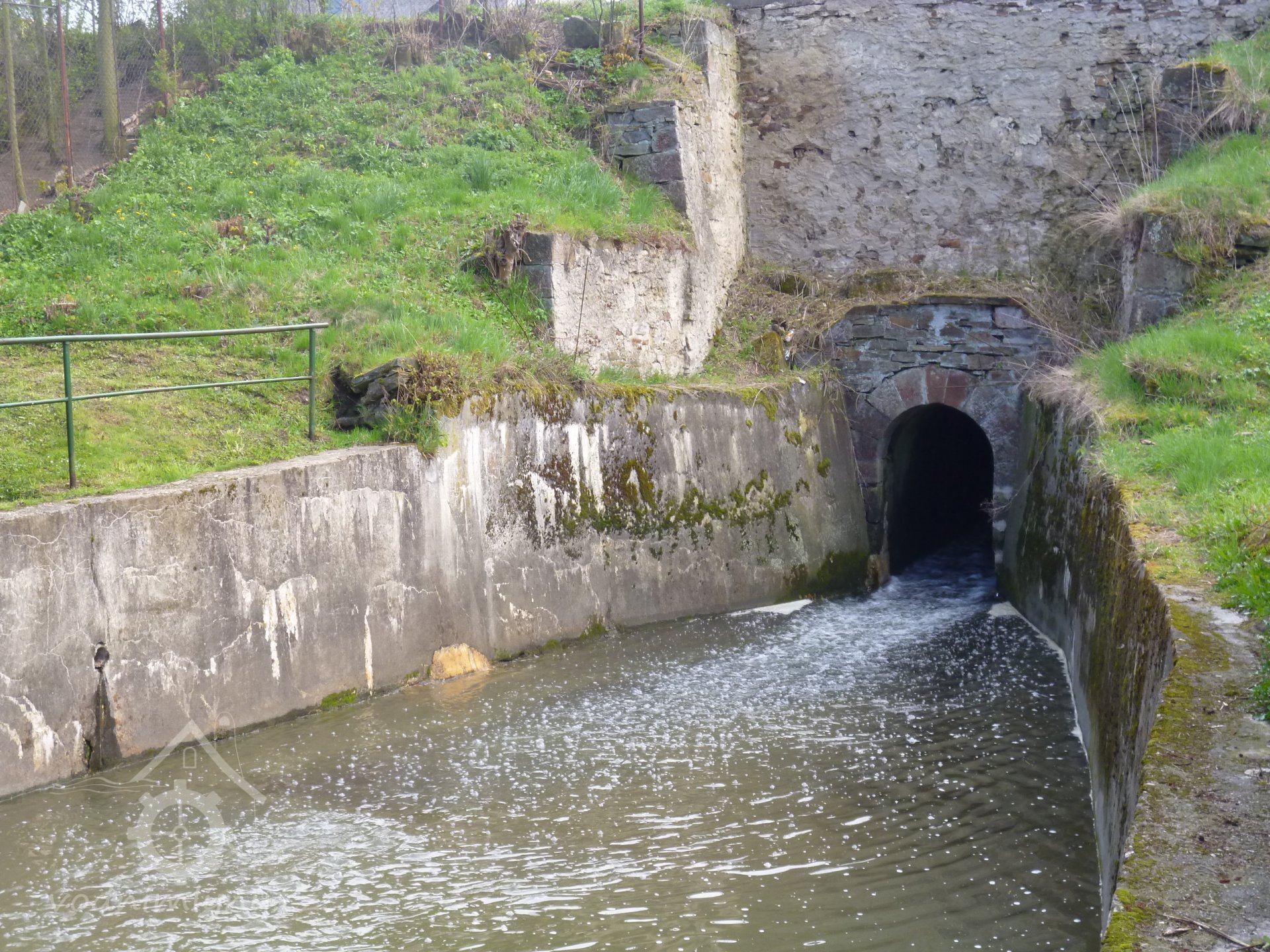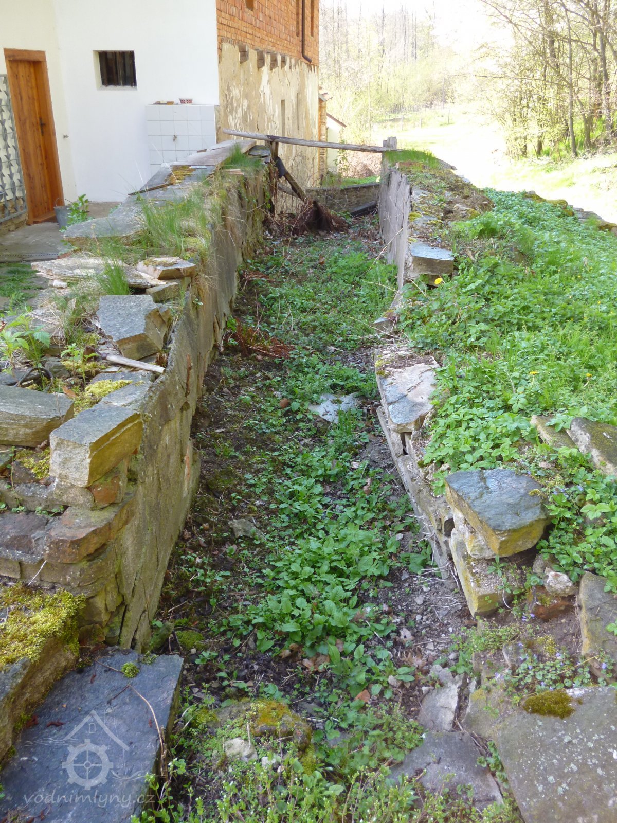 1936: voda z rybníka přitéká náhonem cca 750 m dlouhým, voda se do náhonu pouští krajním levým otvorem stavidlového jezu rybníka. Před mlýnem je náhon ukončen vantroky z kamenného zdiva délky 10 m, šířky 1,4 m, hloubky 0,8 m. Vantroky jsou uzavřeny dřevěnými stavítky. Dále se voda pouští do vantroků dřevěných, délky 3,3 m, šířky 1,4 m, hloubky 0,27 m, vedoucích ke kolu.