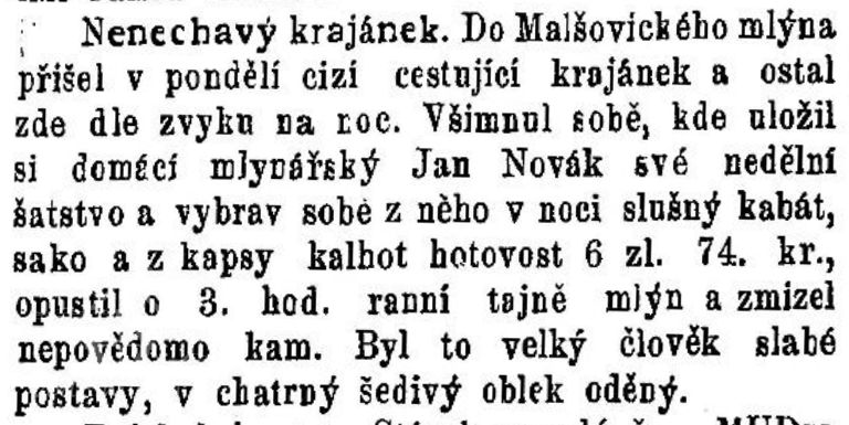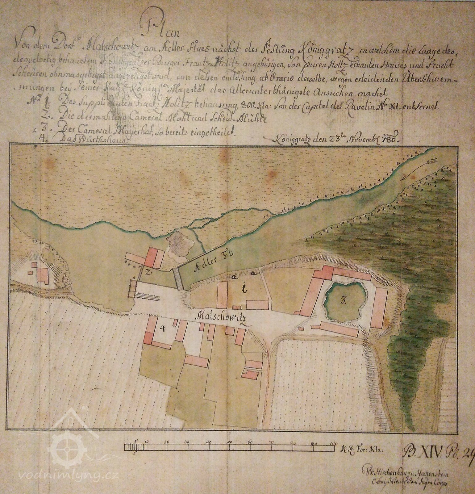 Naproti tomu řídící učitel Václav Vach, který bydlel v Malšovicích v letech 1923-1925, udává na základě zpráv ze starého verbáře Přímského, že roku 1641 koupil malšovický mlýn i s dvorem hradecký měšťan Václav Volf. Tento obchod ho přišel na 4 300 zlatých a každoroční povinnost vykrmovat 4 vepře pro přímský dům nebo 7 zlatých stříbra vyplatit a 2 vepře dodat do kuchyně jezuitské koleje. Těžko tedy určit, který zápis je pravdivý, pokud se již tehdy zde nenacházelo mlýnů více, případně mohlo docházet k záměně mlýnů na náhonu s mlýnkem na Orlici.