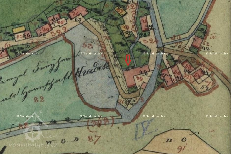 V roce 1734 je v soupise usedlých živností v obci Chotouchov uváděn „mlýn Hořžejší Jiřího Trnky“.