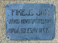 Pevný bod byl umístěn v pravobřežním zdivu mlýnské budovy před česlí dne 28. 9. 1873. "Umístěn byl 11 stop 5 palců pod dolení plochu stropového a zároveň vazebního trámu, který z rohu stavení mlýnského a sice z rohu hořeního proti vodě vyčnívá se v mlýnské zdi z kvádrovců vystavené, a sice též na rohu tomto vysekala do kvádrovce spára či rýha 50 cm dlouhá a 3 cm široká a natřela se černou barvou uprostřed rýhy té a sice kolmo na tuto se zapustil do kvádrovcové zdi klamer (spojka) železná, z které uprostřed zub vyvstalý upraven jest a kterého zubu hoření plocha se dormální výšky čili 11 stop 5 palců pod uvedený trám zasadila. Nad zubem tímto se vpilováním čárek do klamru upravilo měřítko, a sice 10 cm každý cm o sobě znalý."