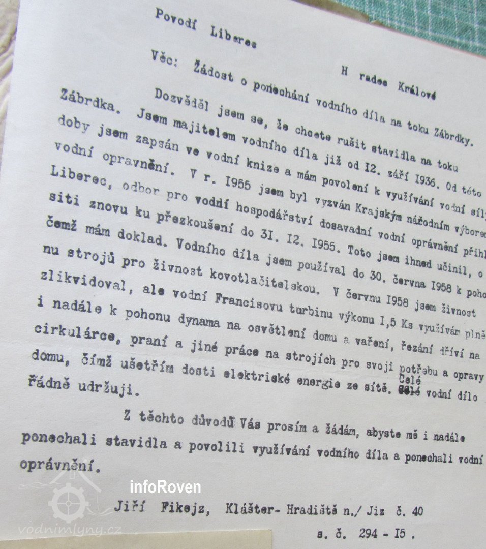 Kovotlačitelská dílna fungovala do roku 1958, kdy Jiří Fikejz živnost zrušil. Francisova turbína dál fungovala a poháněla dynamo na výrobu proudu pro soukromou potřebu.