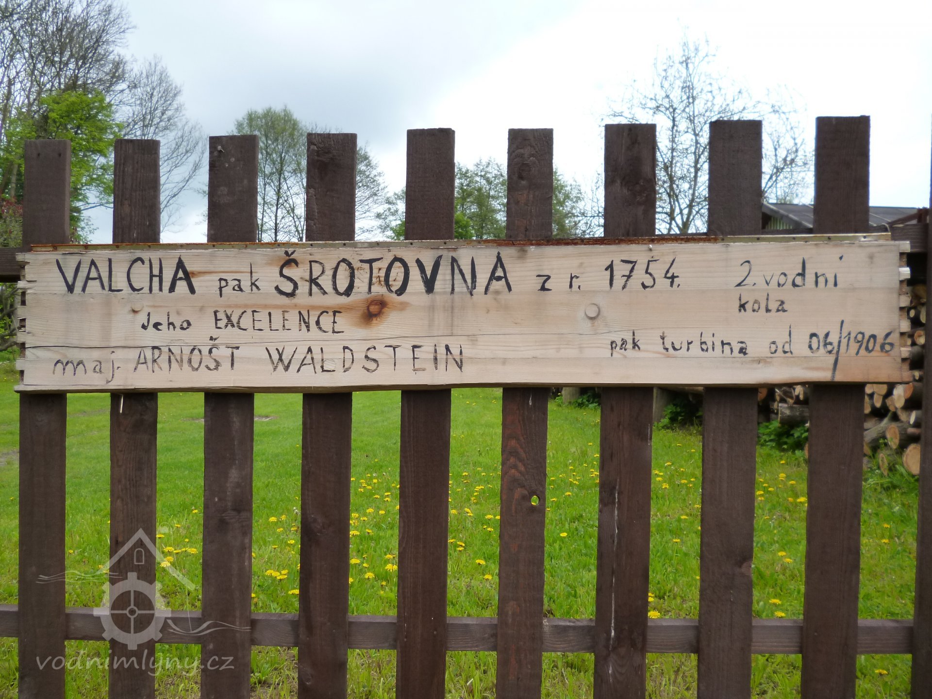 Dne 24. 5. 1906 podala panská kancelář hraběte Arnošta z Valdštejna žádost na povolení přestavby vodního kola na turbínu. Komise se u šrotovny sešla 22. 6. 1906, provedla kolaudaci nové Francisovy turbíny a povolila její provoz výměrem ze dne 2. 7. 1906.