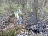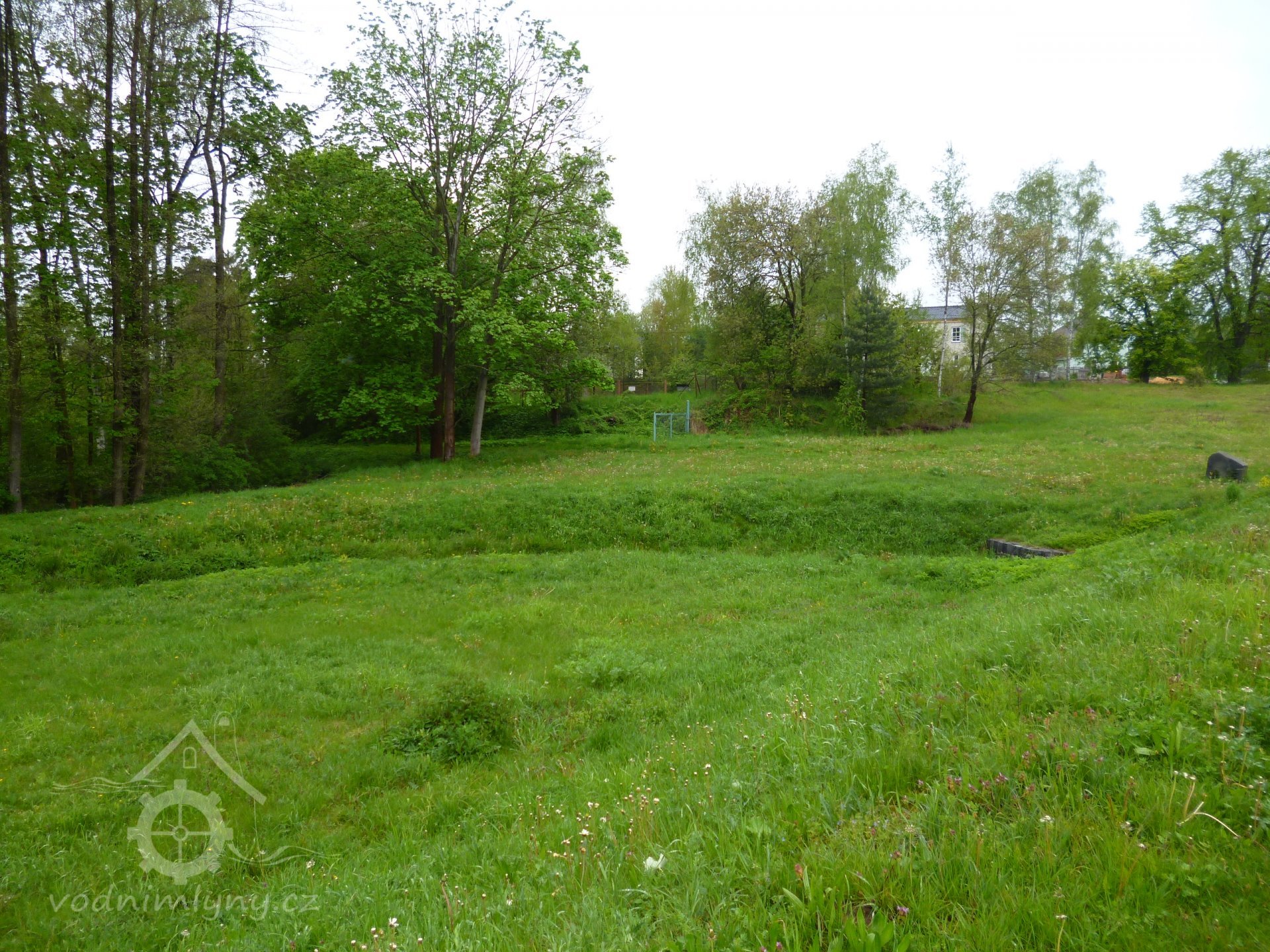 Náhon na mlýn odbočoval z Ploužnického potoka doprava a kopíroval okraj dnešních dvou rybníků, které jsou novějšího data a nebyly součástí vodního díla. Odtok ústil zpět do potoka asi po 80 m.