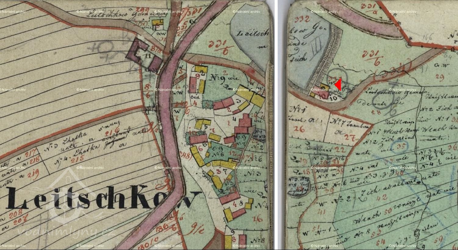 Mlýn leží na počáteční vodě a byl původně svobodnickým emfitentickým mlýnem náležící majitelům statků čp.1, 2, 3, 4, 7 a 9 v Lejčkově. Smlouvou z 13.2.1805 byl prodán.