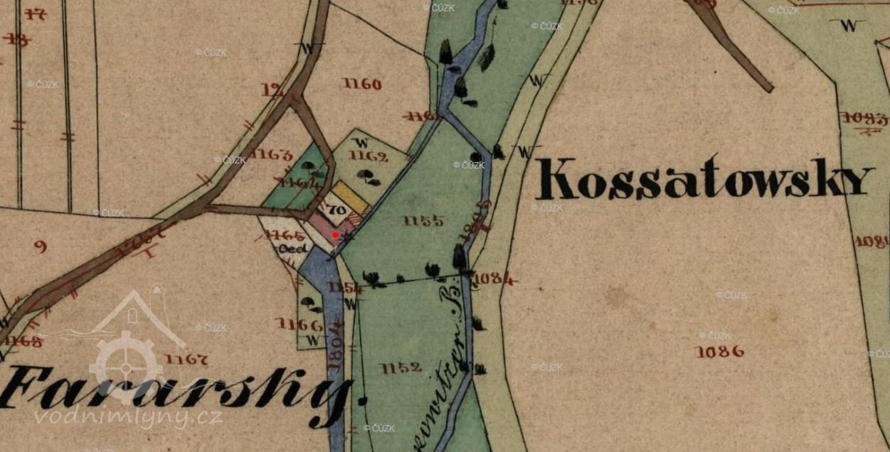 1654 Berní rula: mlýn se neuvádí (dominikální), pouze zmínka o pusté Košatovské chalupě
