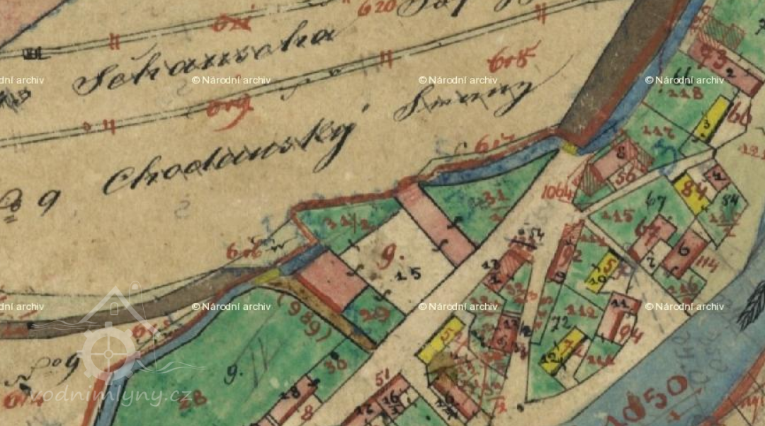 Popis1930: 2 kola na svrchní vodu 1: hltnost 0,142 m3/s, spád 3,51 m, výkon 4,97 HP 2: hltnost 0,096 m3/s, spád 3,25 m, výkon 3,13 HP