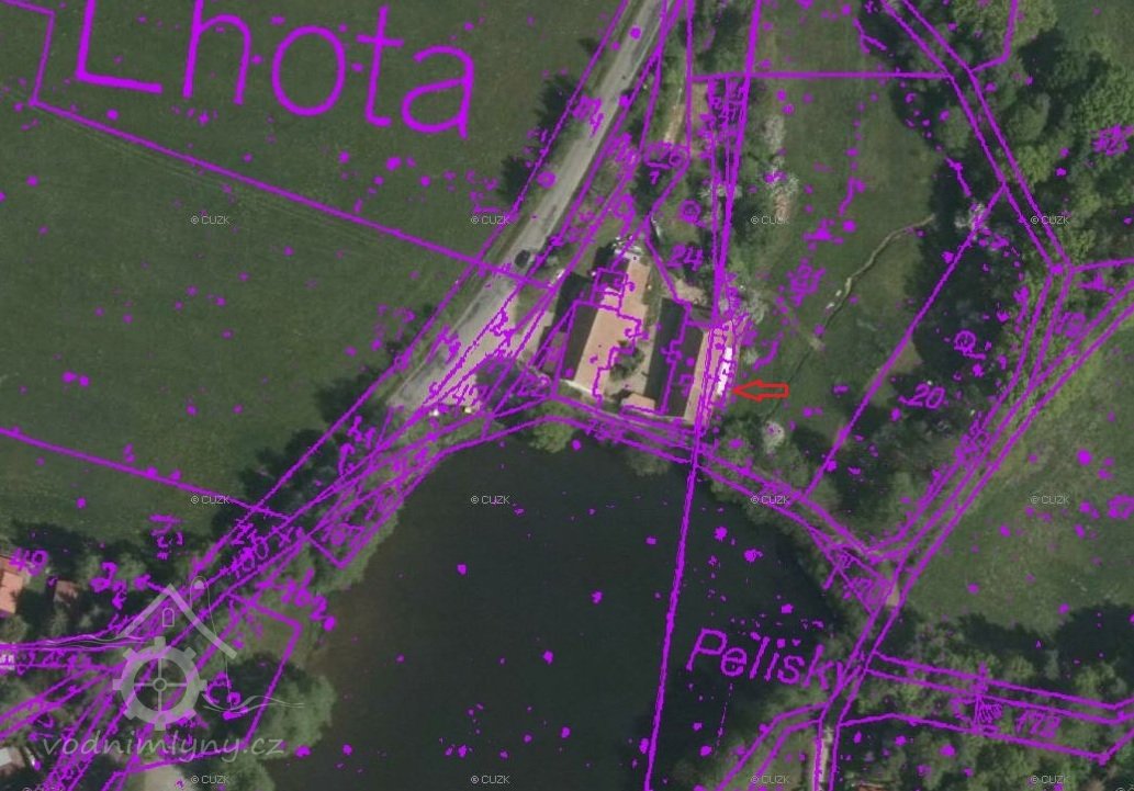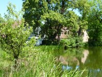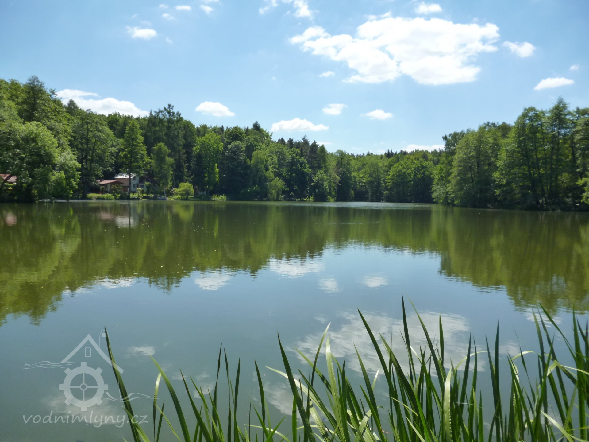 Mlýn stojí pod hrází rybníka, ze kterého tekla stavidlem voda k mlýnu.