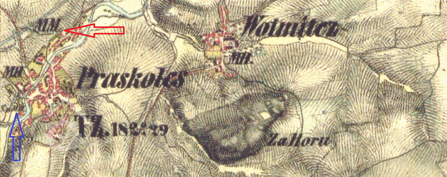 200 m západně od kostela sv. Mikuláše v Praskolesích