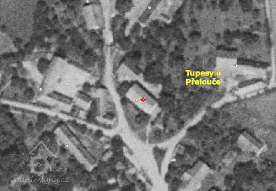 Nejstarší nalezená zmínka o mlýně je z roku 1559, kdy byla obce Tupesy součástí choltického panství, a to v souvislosti s dědictvím po Jiřím Gerštorfovi, který svůj majitelem rozdělil mezi syny Jana a Bernarta. V soupise dědictví je mezi statky uváděna „obec Tupesy s mlýnem“. Mlýn byl tehdy dřevěný.