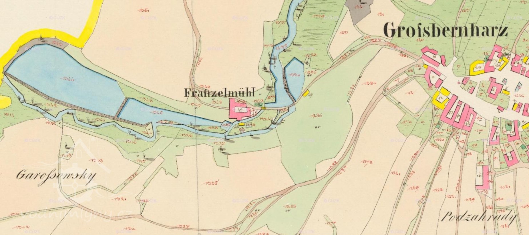 V Berní rule z r. 1654 uváděn mlynář Jakub Franczl. Má vlastní mlýn o jednom kole.