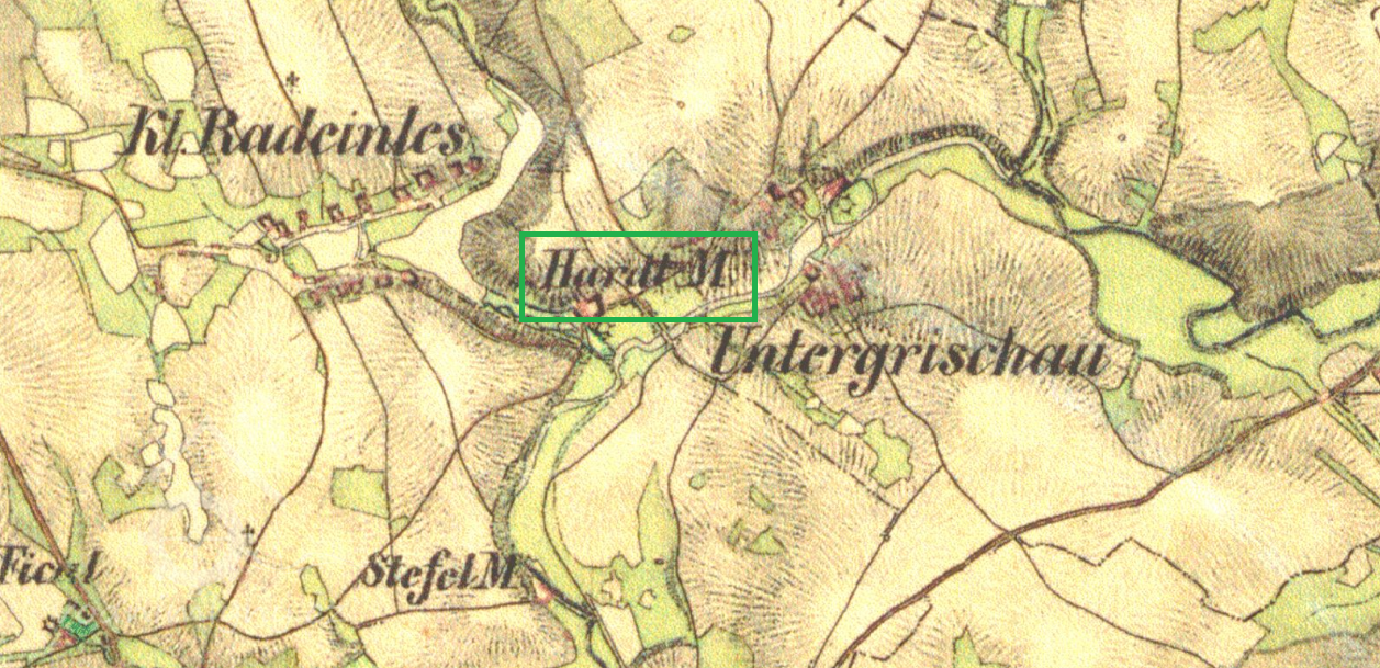 1767: činže z Hartlova mlýna: 60 str. obilí (s. 166); 1783: „Obec se vydlužila 2000 zl. na opravu té školy, barevnice a Hartlova mostu, jenž stářím upadl. V pilíři jeho našli dělníci skrýš zlodějské společnosti, kteráž vykrádala kostely, tak 24. 5. 1783 v Hradci františkánský. Všecko od stříbra a zlaté prsteny (ty v ceně 400 zl.) sloupali. Za pilířem šla sluj a v té banditi přespávali a několik kusů monstrance a kalichů zapomněli. Vůdcem byl Jan Konstant, nějaký řezník z Hradce prý s nimi cho- dil a zatím roku 1791 zatkli soukeníka Jakuba Bar- tůňka. Odveden do Tábora a usvědčen."