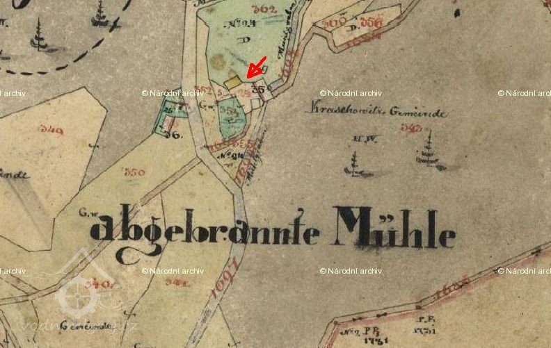 Na starších mapách je mlýn nazýván Spálený, Abgebrannte...... Na současných je uveden pod názvem U Spálenků.