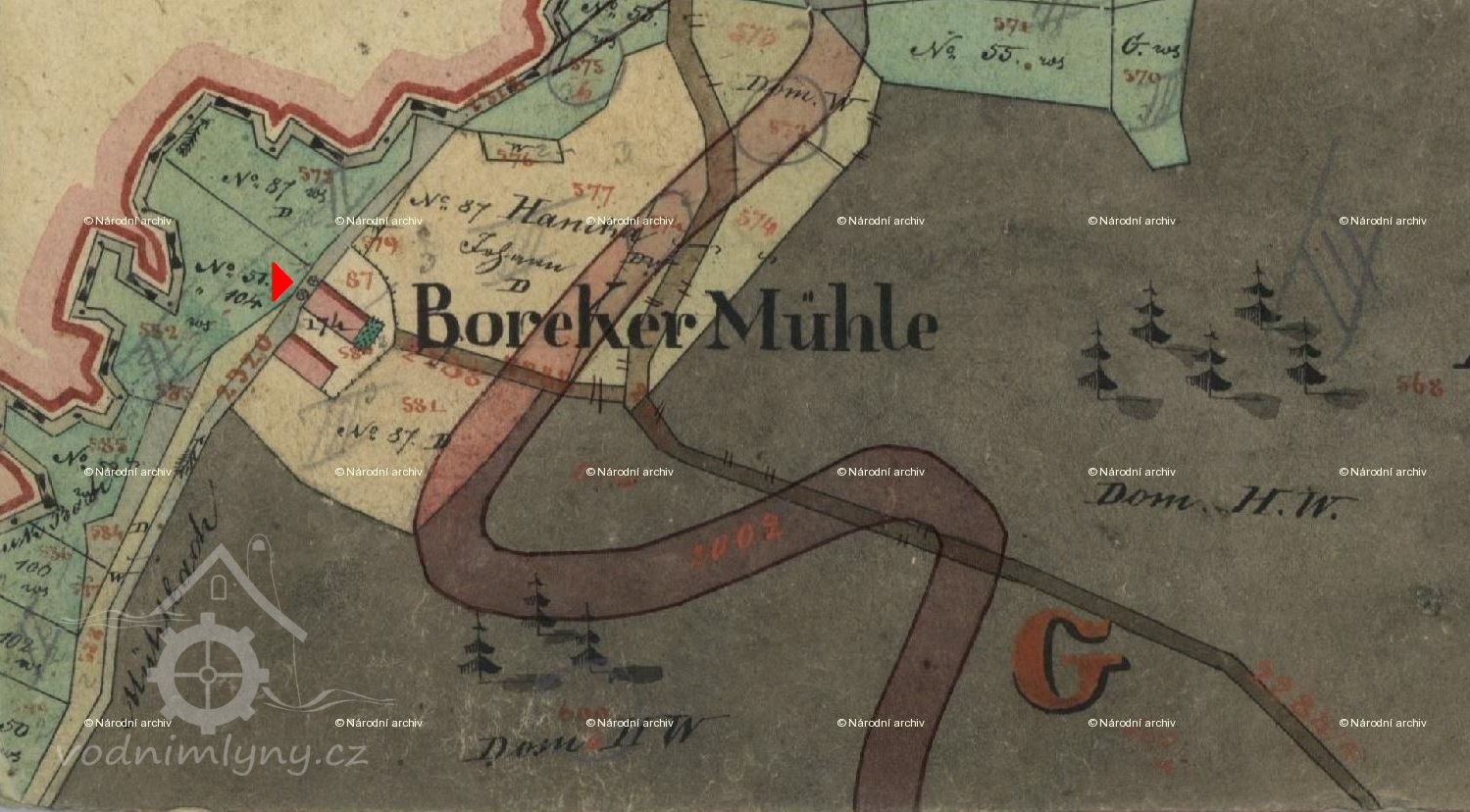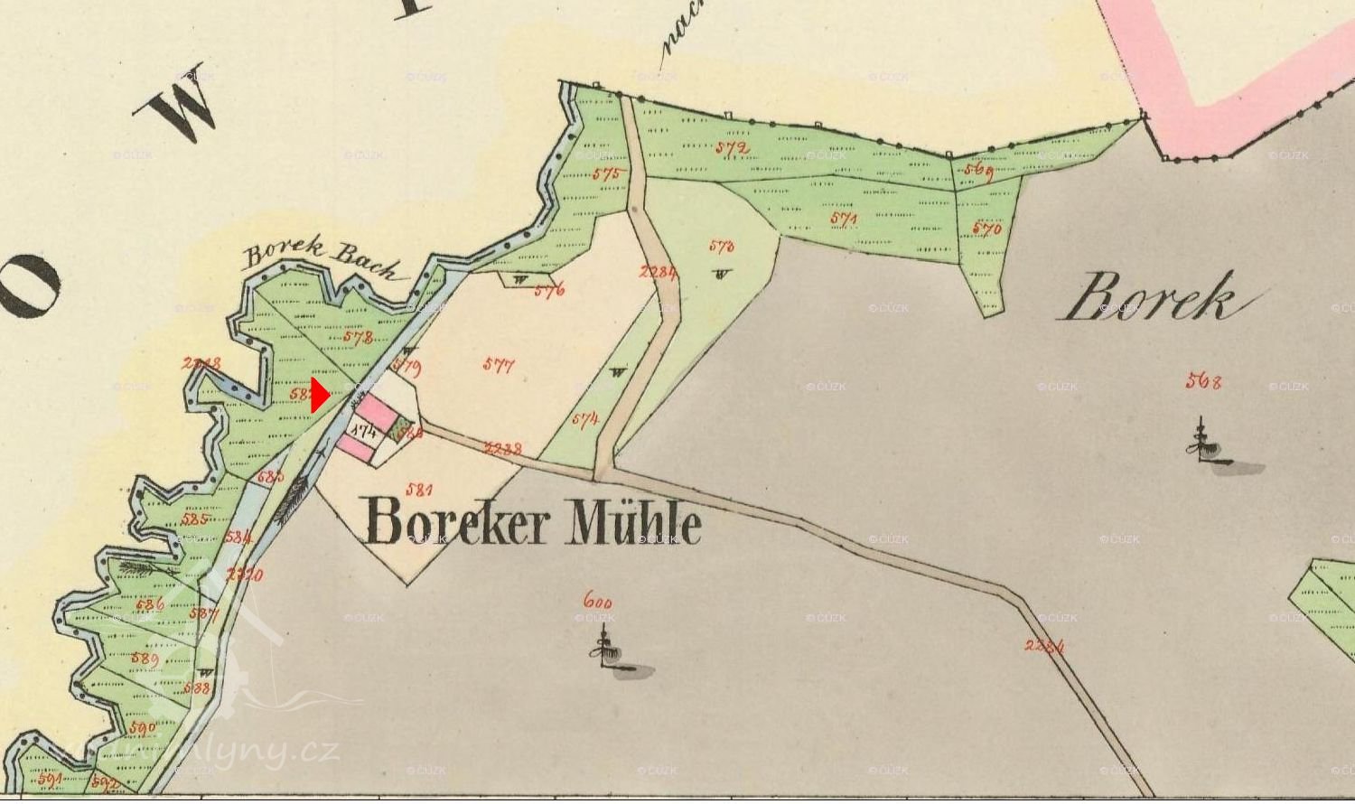 Pod jednou ze zatáček silnice z Košetic na Čechtice, na pravém břehu Martinického potoka stojí část objektů bývalého Boreckého mlýna a pily. Z mlýna i pily se dochovala část pohonu, která dává představu, jak mlýn pracoval před válkou. Zajímavý je mechanismus pily, který poháněl samotný katr a který zůstal ve svém původním postavení.