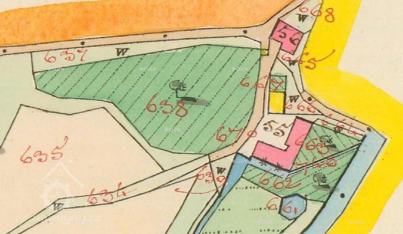 Popis1930: 1 kolona svrchní vodu, hltnost 0,086 m3/s, spád 5,2 m, výkon 3 HP