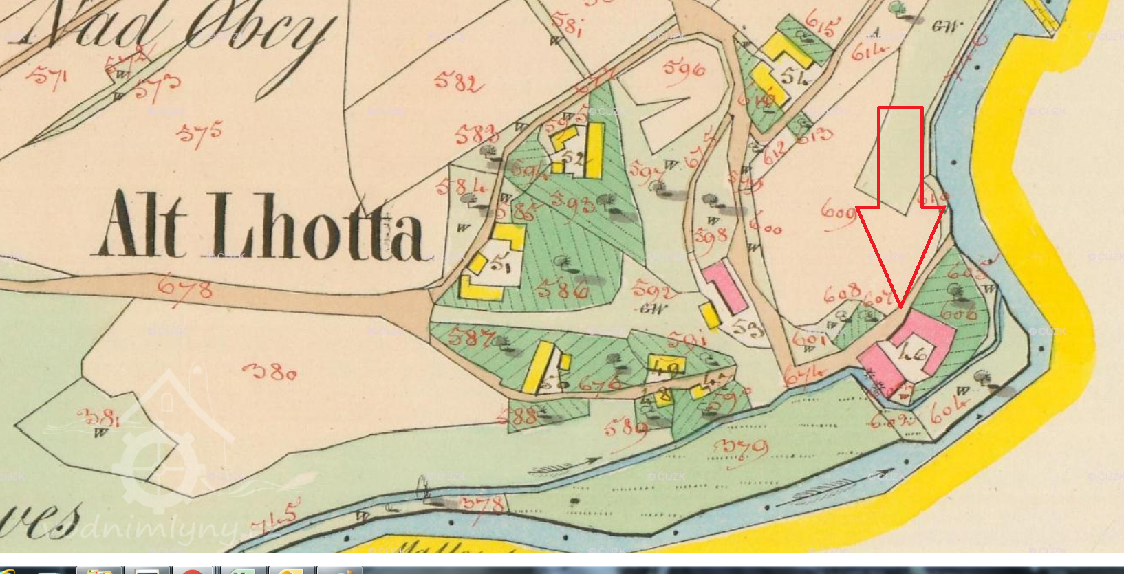 Mlýn v centru Staré Lhoty, po požáru 1898 údajně vybaven kolem na spodní vodu (v seznamu z roku 1930 je však uváděno běžné kolo na svrchní vodu). 1970 společně s celou osadou zatopen vodou Malešovské přehrady.