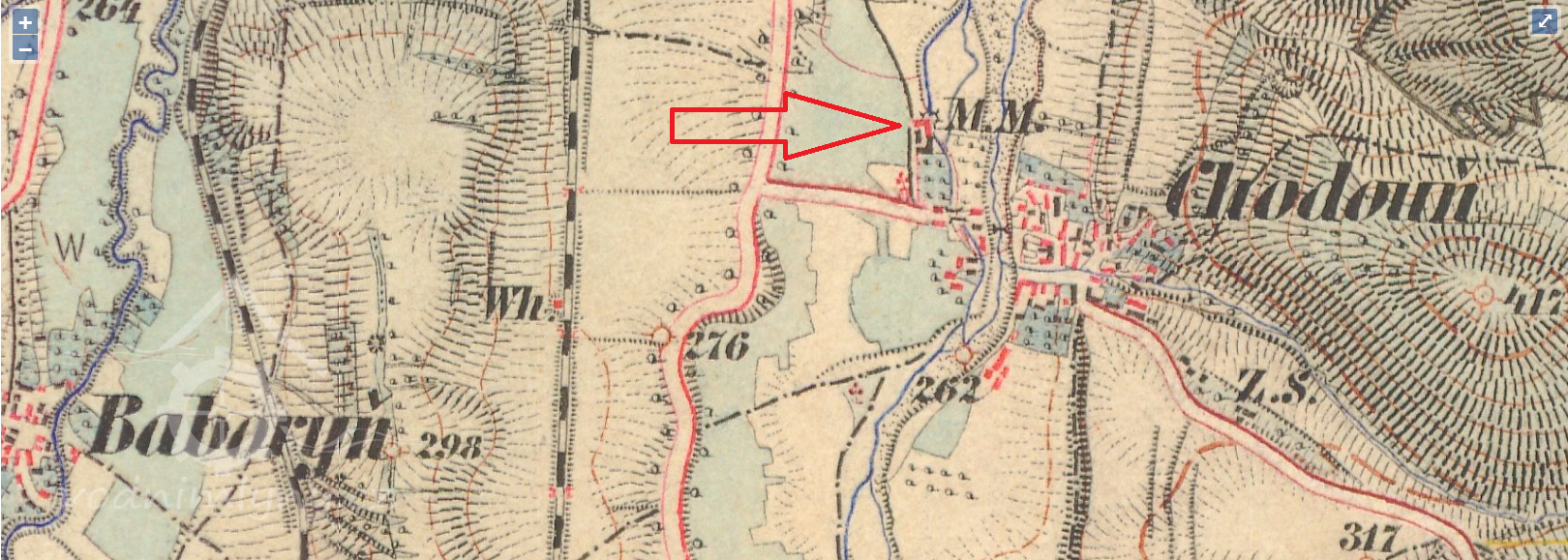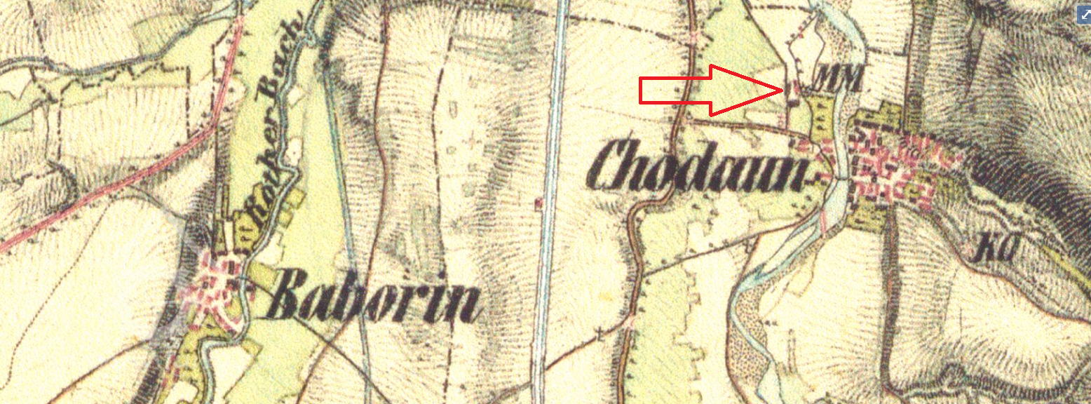 400 m severozápadně od kapličky v Chodouni
