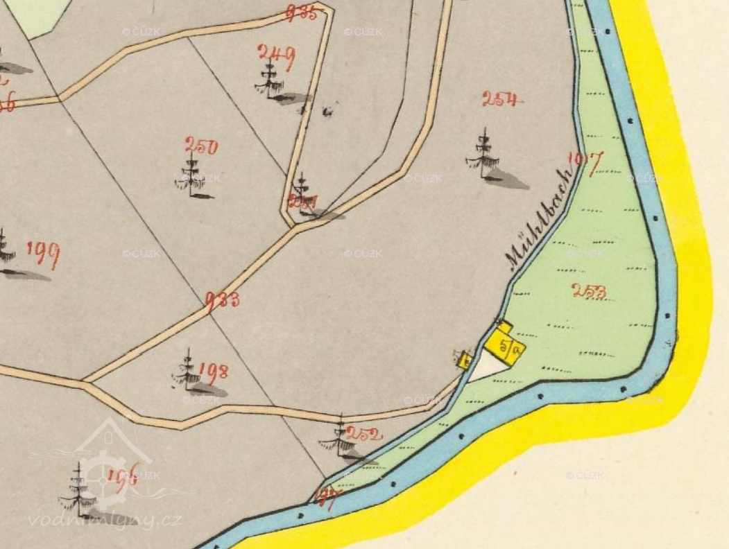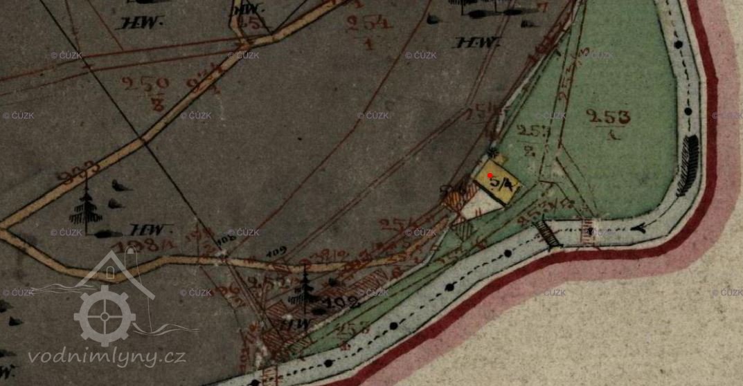 Menší mlýn s extrémním spádem přes 12 m, koncem 19. stol. přestavěný na tkalcovnu a brusírnu dřeva, o něco níže dnes instalována malá vodní elektrárna.