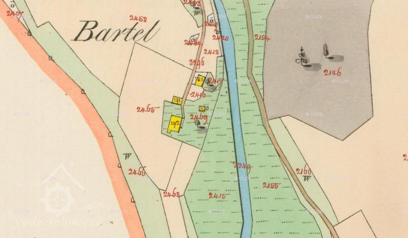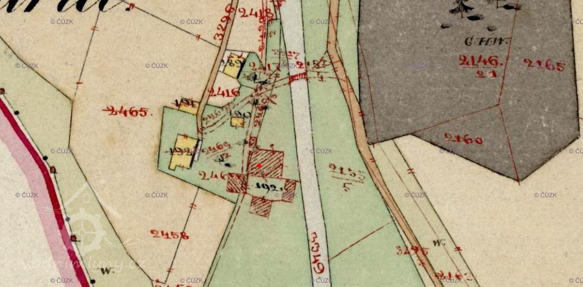 Zaniklý mlýn na výběžku katastru Nebeské Rybné, zachovány pouze nepatrné zbytky základů, mlýniště navíc v nedávné době poničeno při stavbě nové lesní cesty.