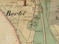 Na leteckém záběru z roku 1950 zachycen již bez střechy