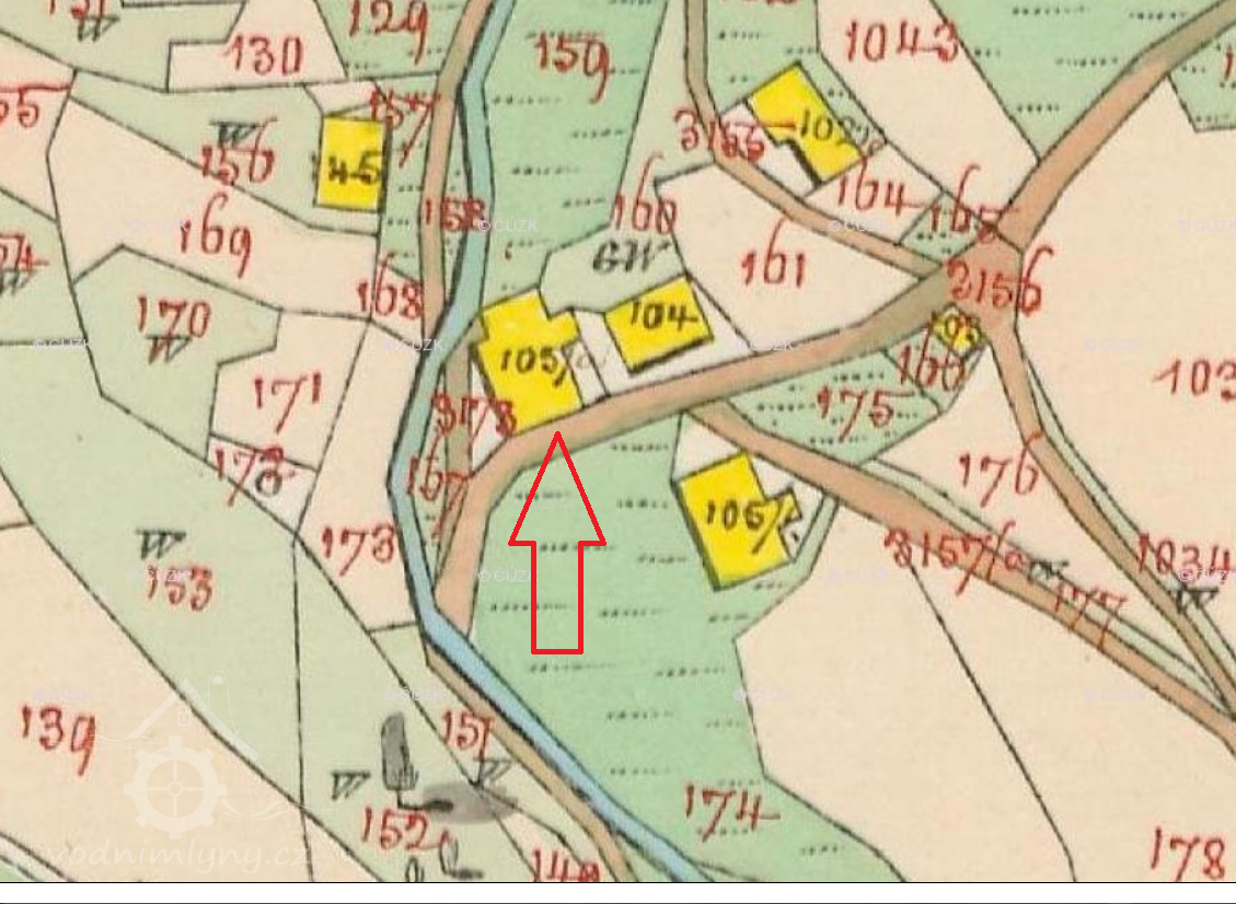 Popis1930: 1 kolo na svrchní vodu, hltnost 0,033 m3/s, spád 7,1 m, výkon 2,12 HP