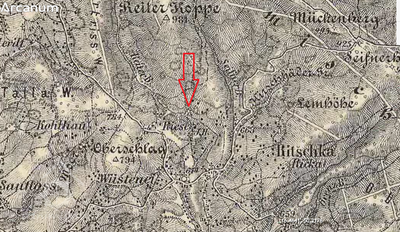 1,1 km severně od kostela Nejsv. Trojice v Říčkách