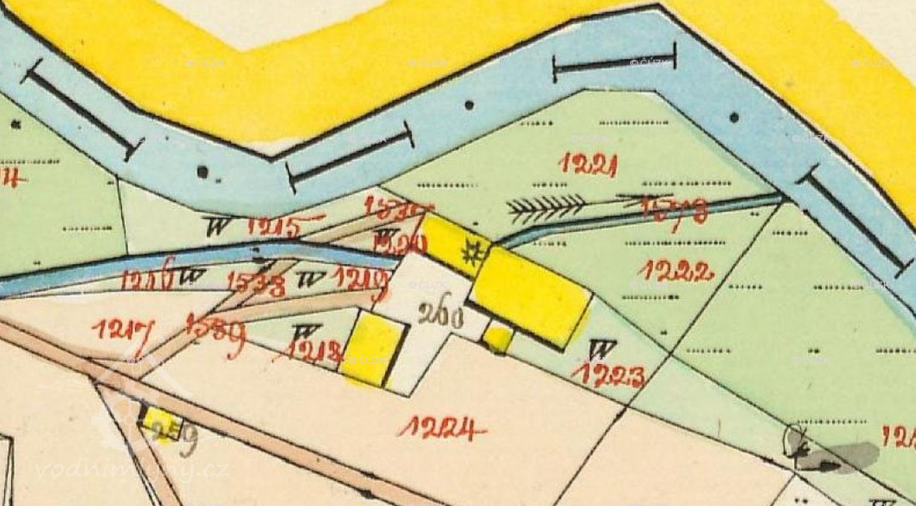 Popis1930: 1 turbína Francis, hltnost 0,13 m3/s, spád 6,4 m, výkon 8,4 HP