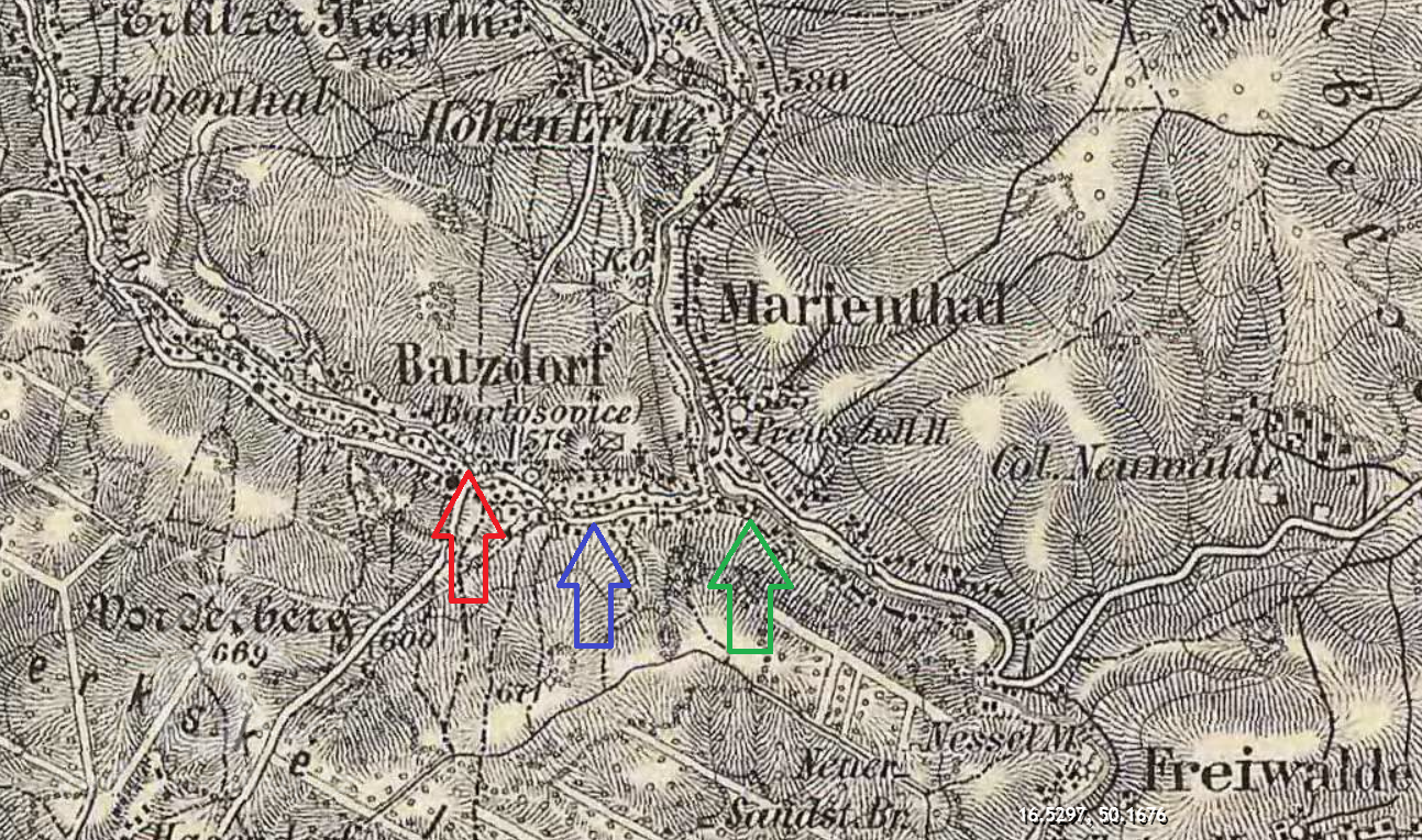 1,1 km východně od kostela sv. Maří Magdaleny v Bartošovicích