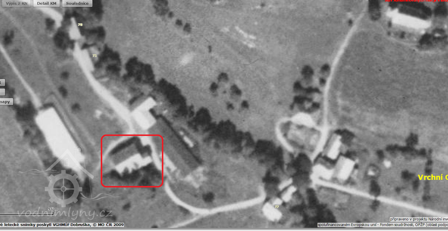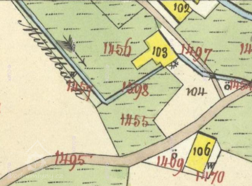 Mlýn zbořený v 70. letech 20. stol., zůstal pouze sklípek a betonová deska turbínové kašny. Transfer Francisovy turbíny se nezdařil.