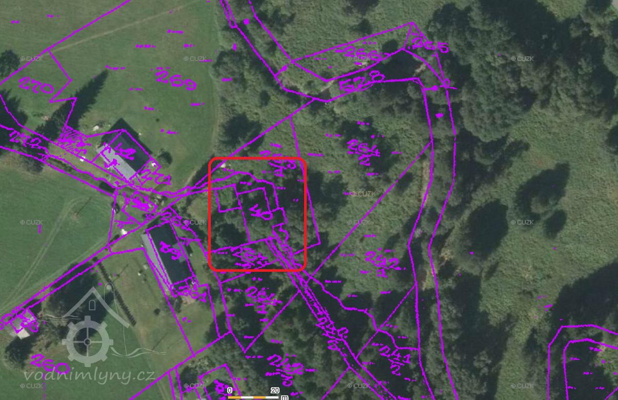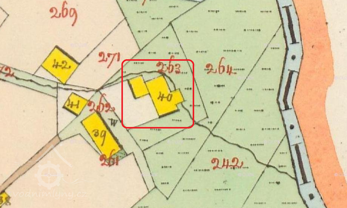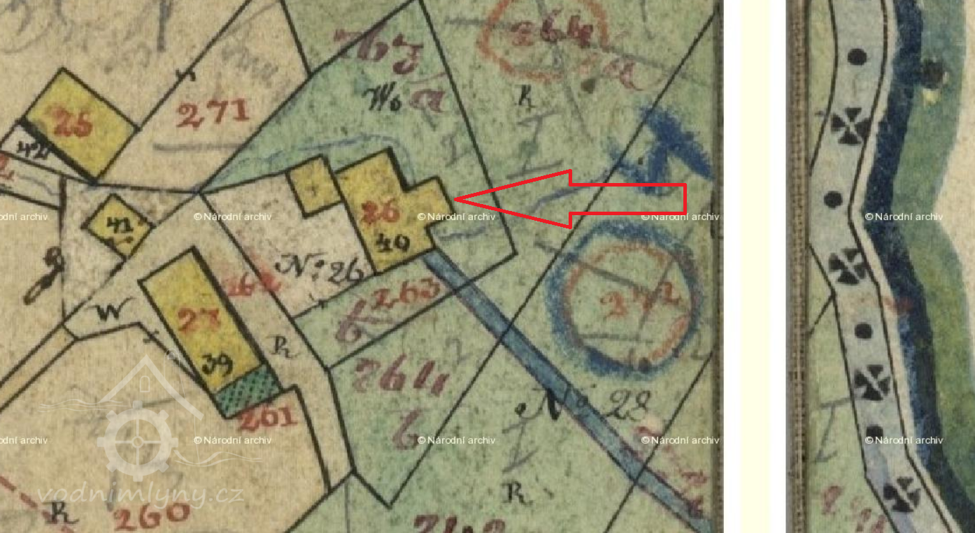 Popis1930: 1 kolo na svrchní vodu, hltnost 0,048 m3/s, spád 4,8 m, výkon 2,75 HP