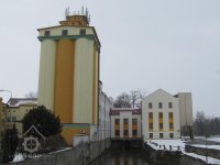 Mlýn s turbínou, který vyrábí elektřinu a mele