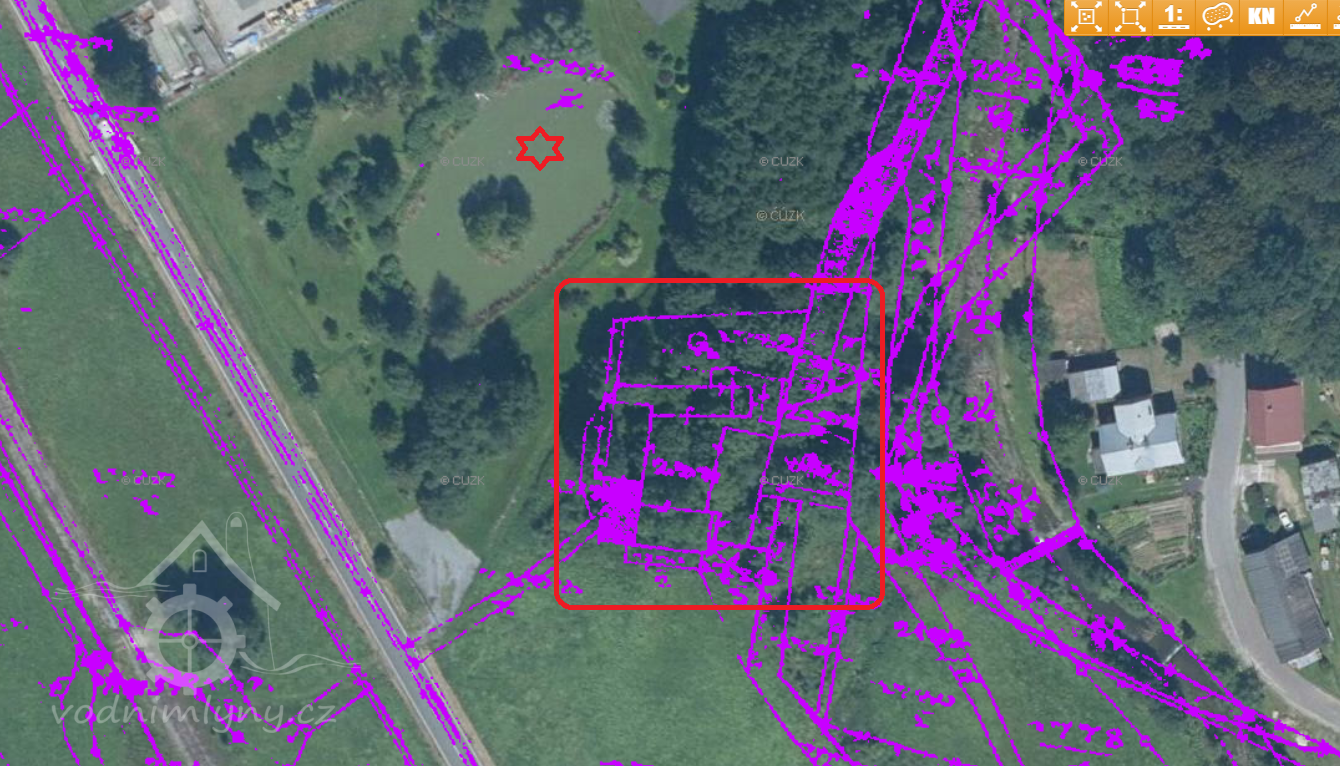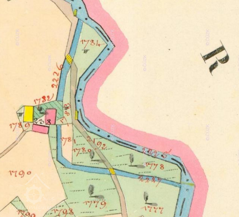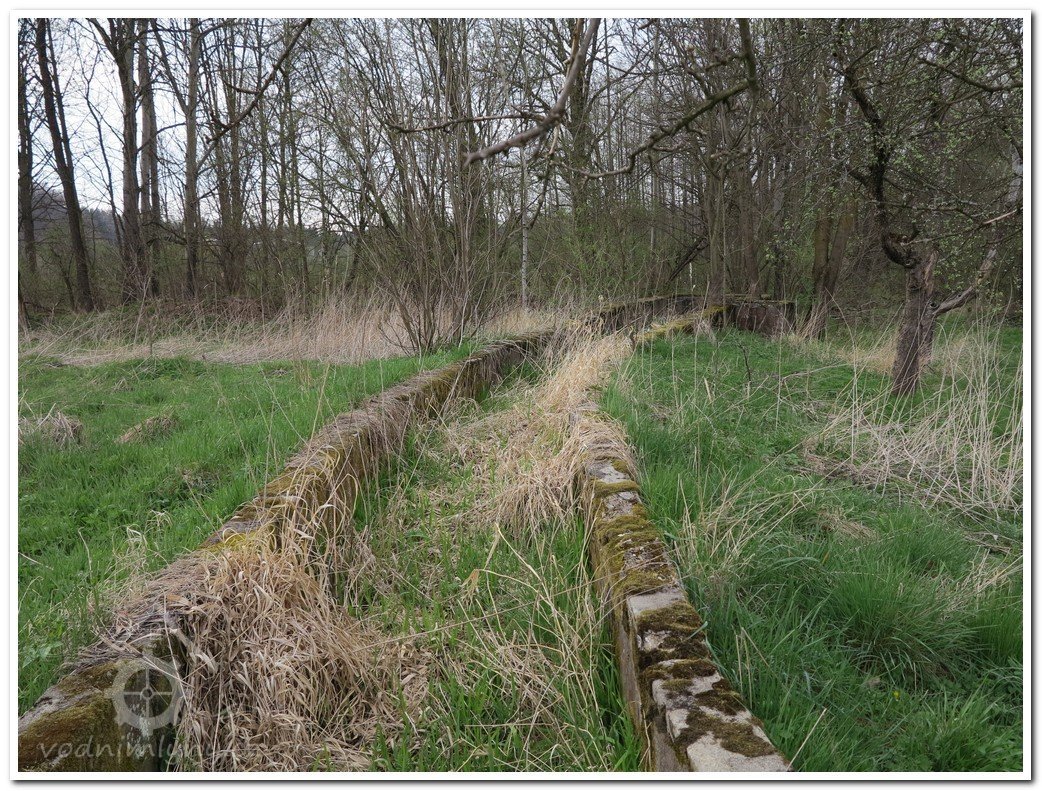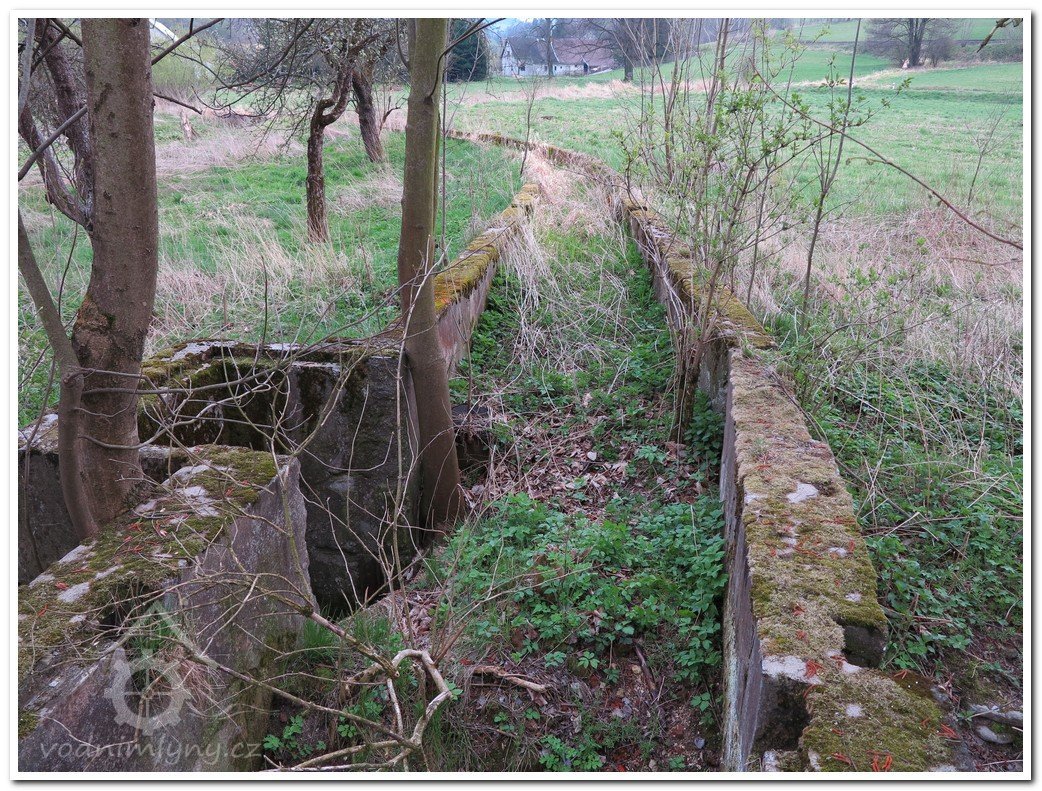 Základy velkého mlýna u plotu areálu Ondřejovických strojíren. Před několika lety byla z trosek doslova hornickým způsobem vydolována Francisova turbína a instalována údajně kdesi v Krušných horách.