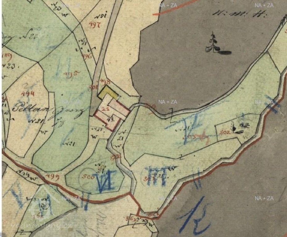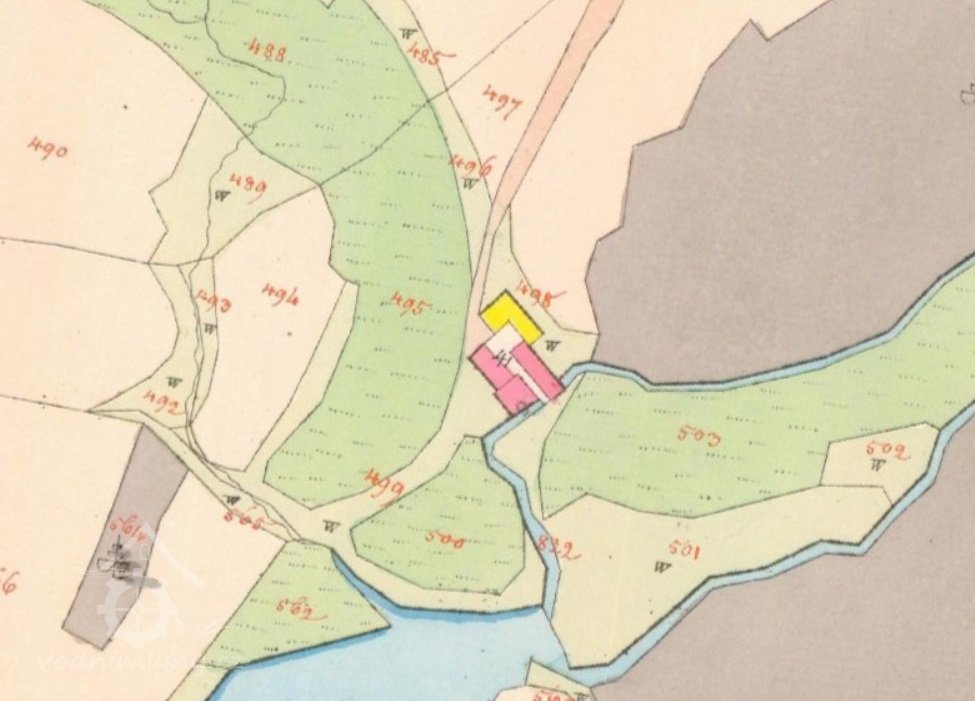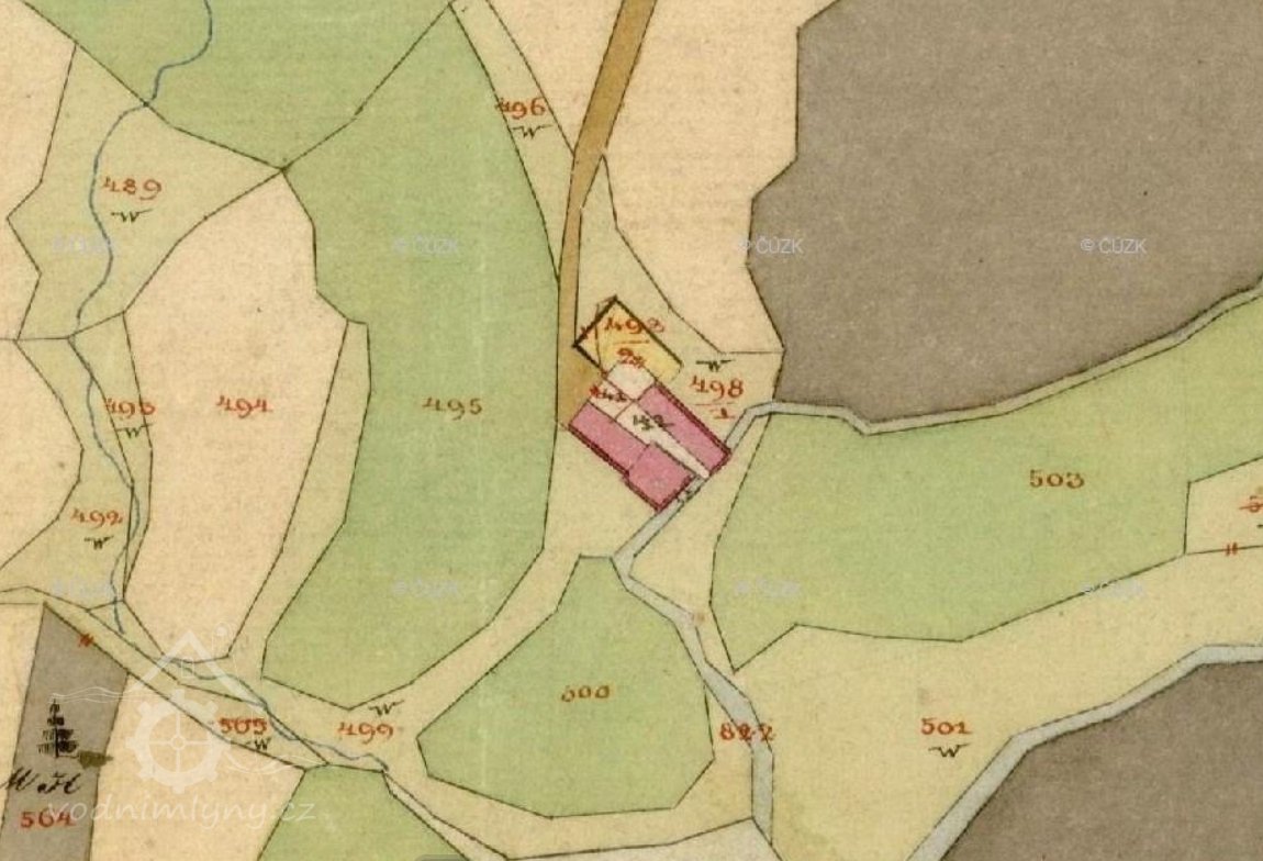 Popis1930: 1 kolo na svrchní vodu, hltnost 0,06 m3/s, spád 4,1 m, výkon 2 HP