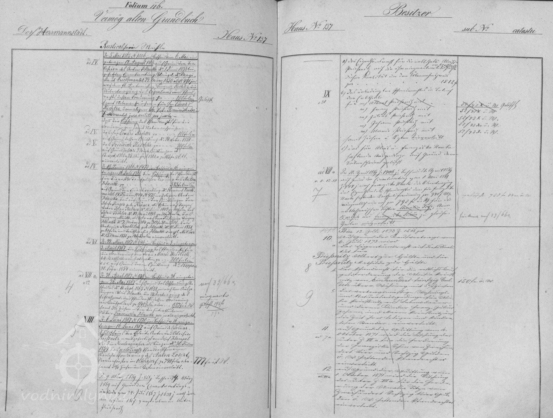 - 1. června 1867 zemřel ve 23,00 hodin večer v Heřmanovicích v č. p. 137 ve věku 53 let Anton Priessnitz zdejší mlynářský mistr. Jeho manželství trvalo 22 let a příčinou úmrtí byla cévní mozková příhoda. Pochován byl na Heřmanovickém hřbitově 4. června 1867.