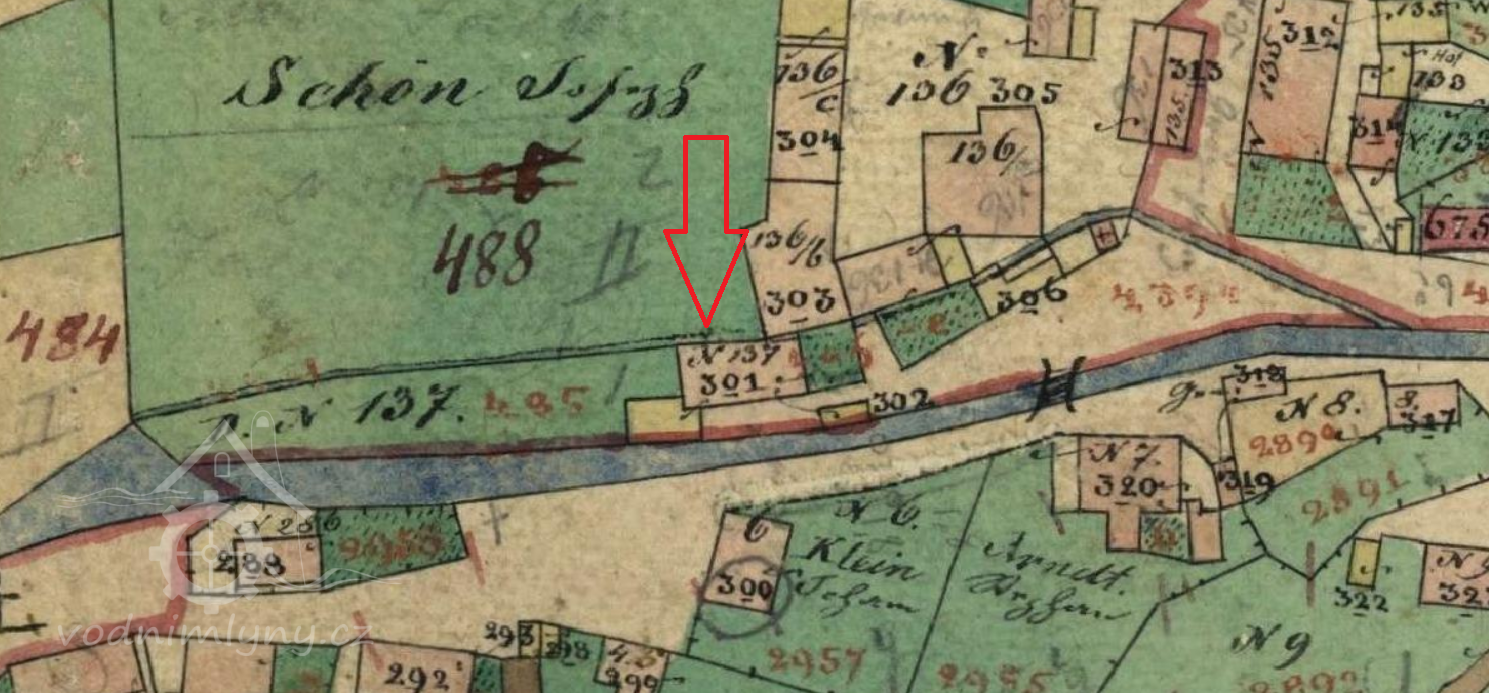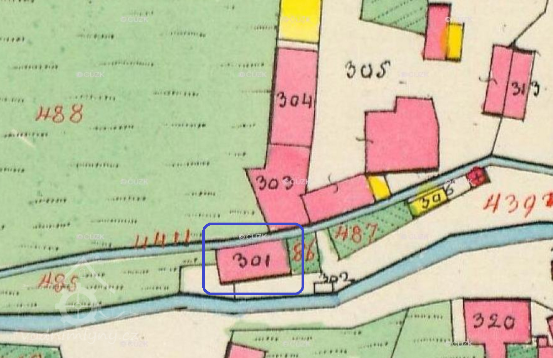 Popis1937: 1 kolo na svrchní vodu, hltnost 0,078 m3/s, spád 4,2 m, výkon 2,8 HP