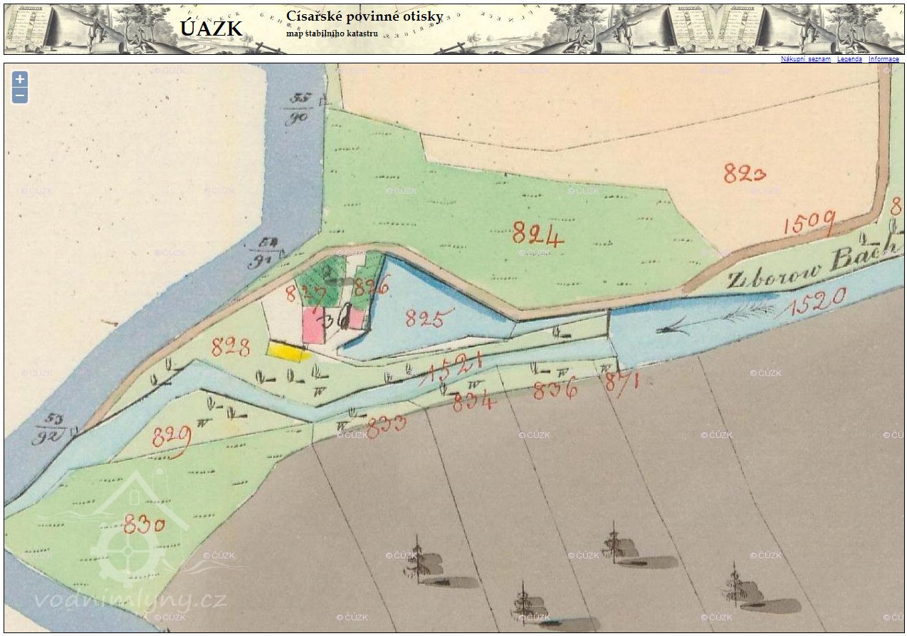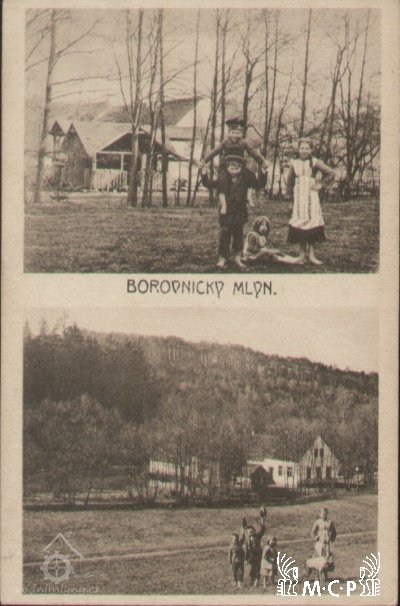 Zborovský potok/Mlýnský rybník, Borovnice 17, Fr. Sezemský, mlýn a pila, 2 kola na svrchní vodu, 0,150/0,142 m3/s, spád 3,8/3,6 m, výkon 4,9/4,3 HP