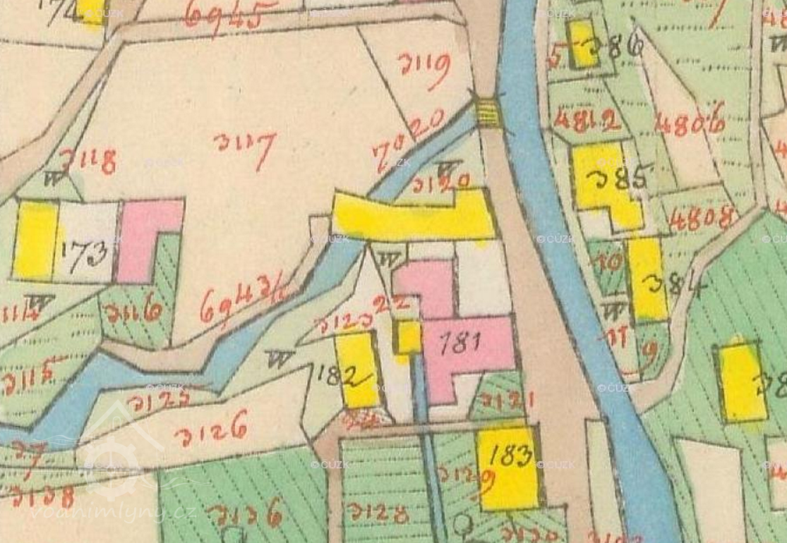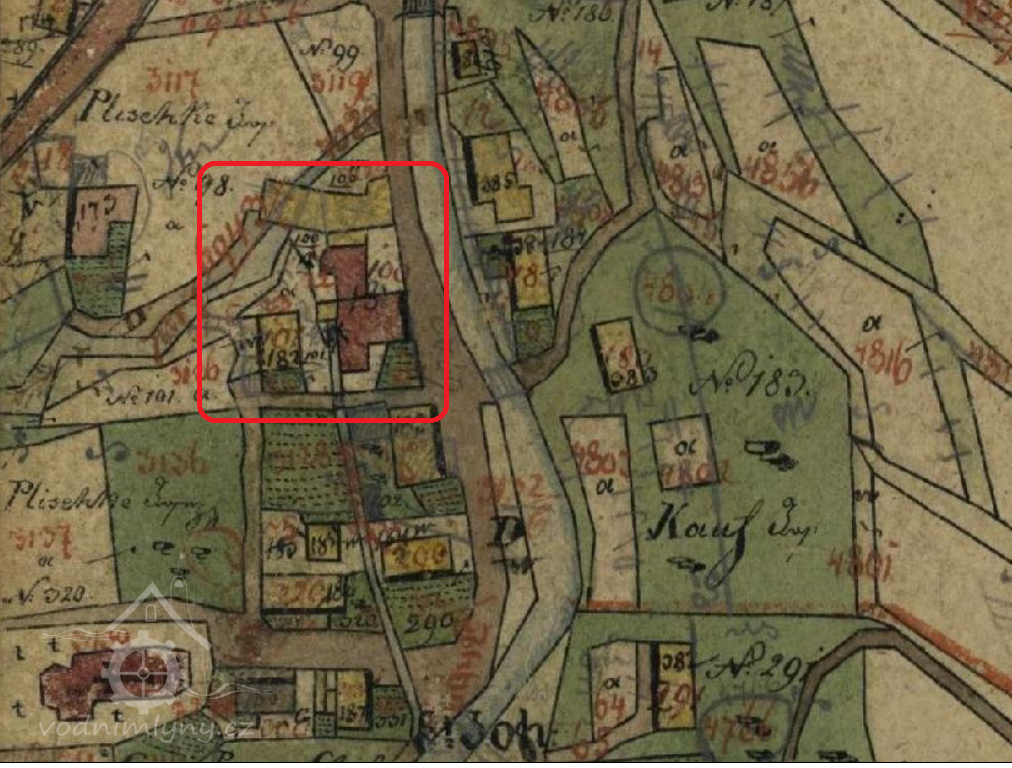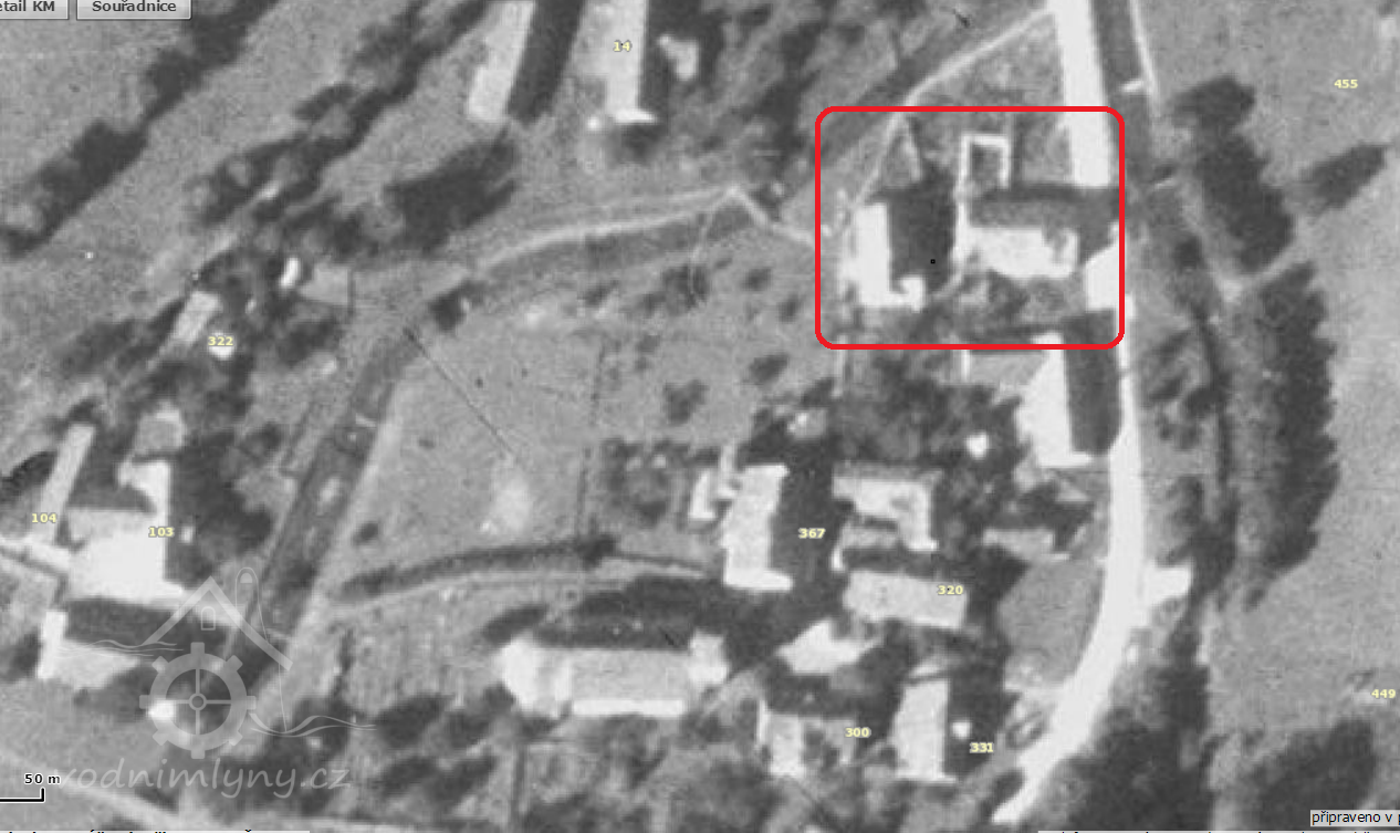 Velký mlýn v centru Domašova, poblíž kostela sv. Jana Křtitele, zbořen po II. světové válce.
