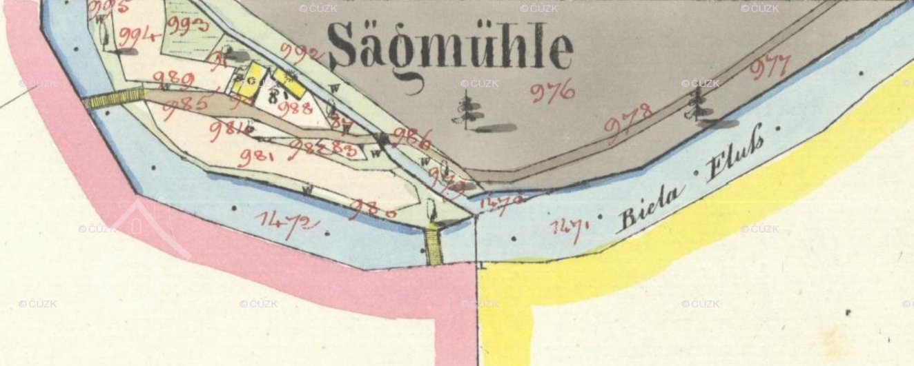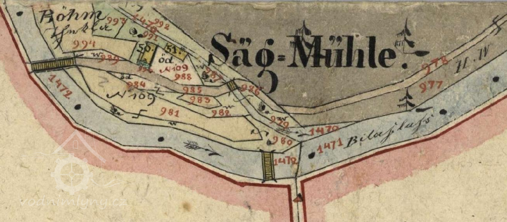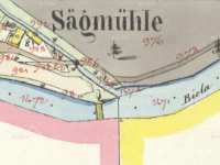 Větší mlýn, sloužící později jen jako pila a ještě později brusírna dřeva pro papíru A.G. Bielathal.
