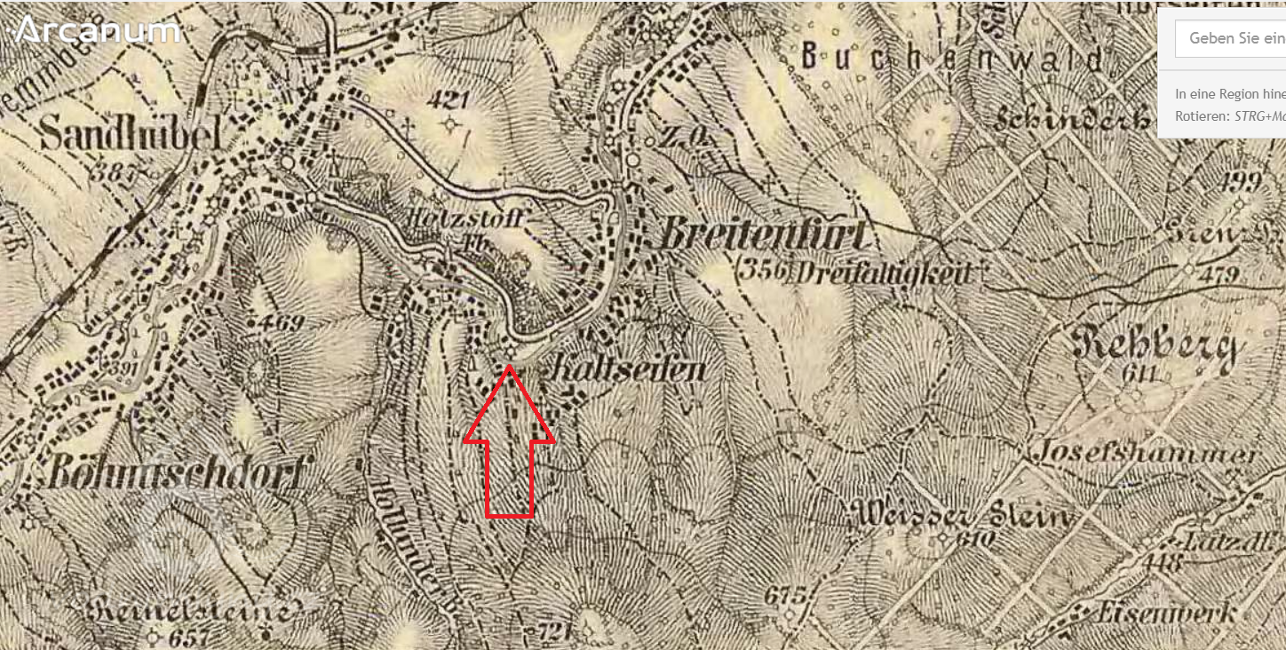 1,7 km východně od kostela sv. Jan Křtitele v Písečné