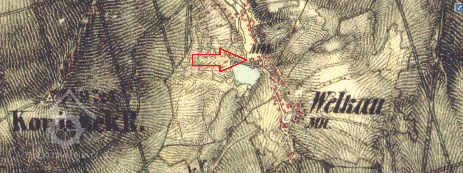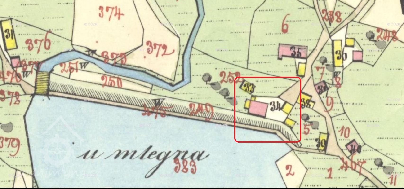 Velký rybník zvaný Mlýnský přímo nad mlýnem