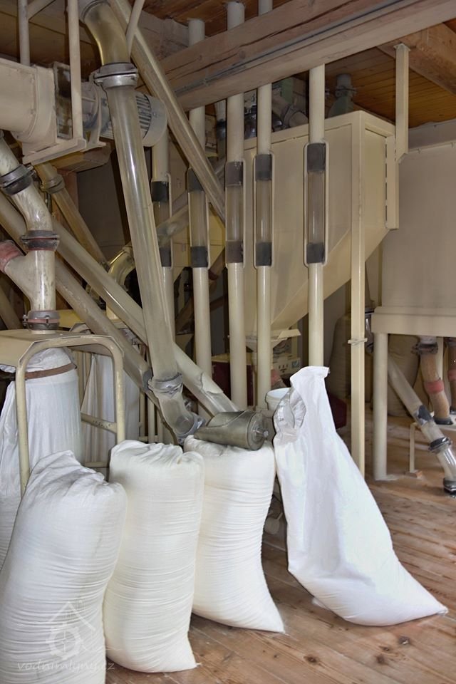 vnitřní prostor mlýnice mlýnice 7 x 7,1 m, údajně nejmenší průmyslový mlýn v Čechách