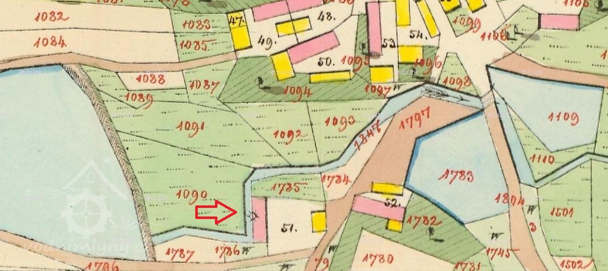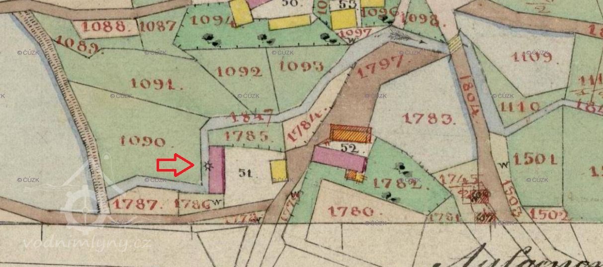 1930: 1 kolo na svrchní vodu, hltnost 0,15 m3/s, spád 4,2 m, výkon 5,4 HP
