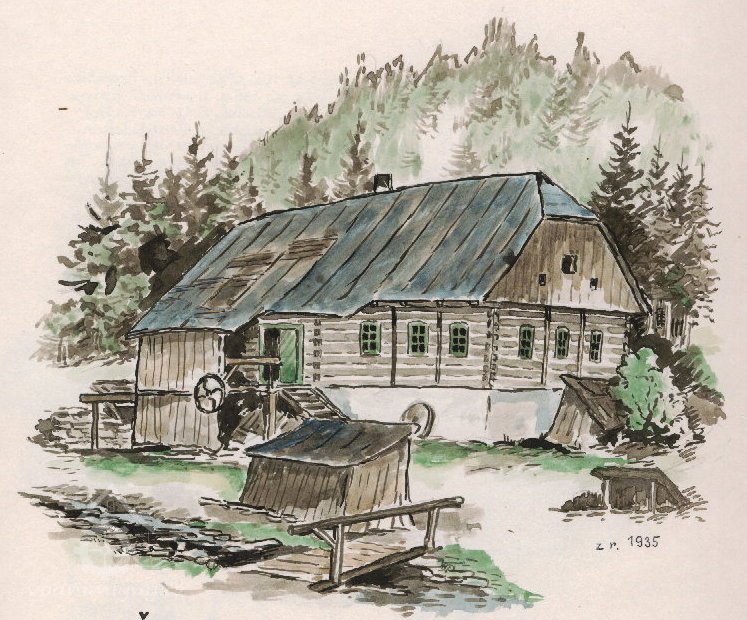 Popis1930 pila: 1 kolo na svrchní vodu, hltnost 0,87 m3/s, spád 5 m, výkon 3,77 HP