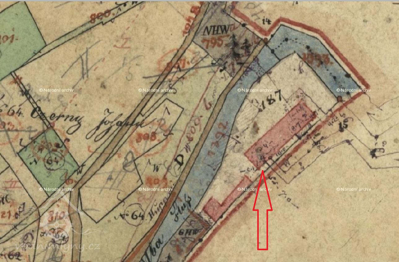 1848 František Gruss, mlýns grunty. Povinnost laudemia z 1040 zl. CM na 5 a 2 1/2 % úrok. Právo držitele vodotok skrze les Klapavec způsobiti a bez dalšího odškození v stálém stavu držeti.